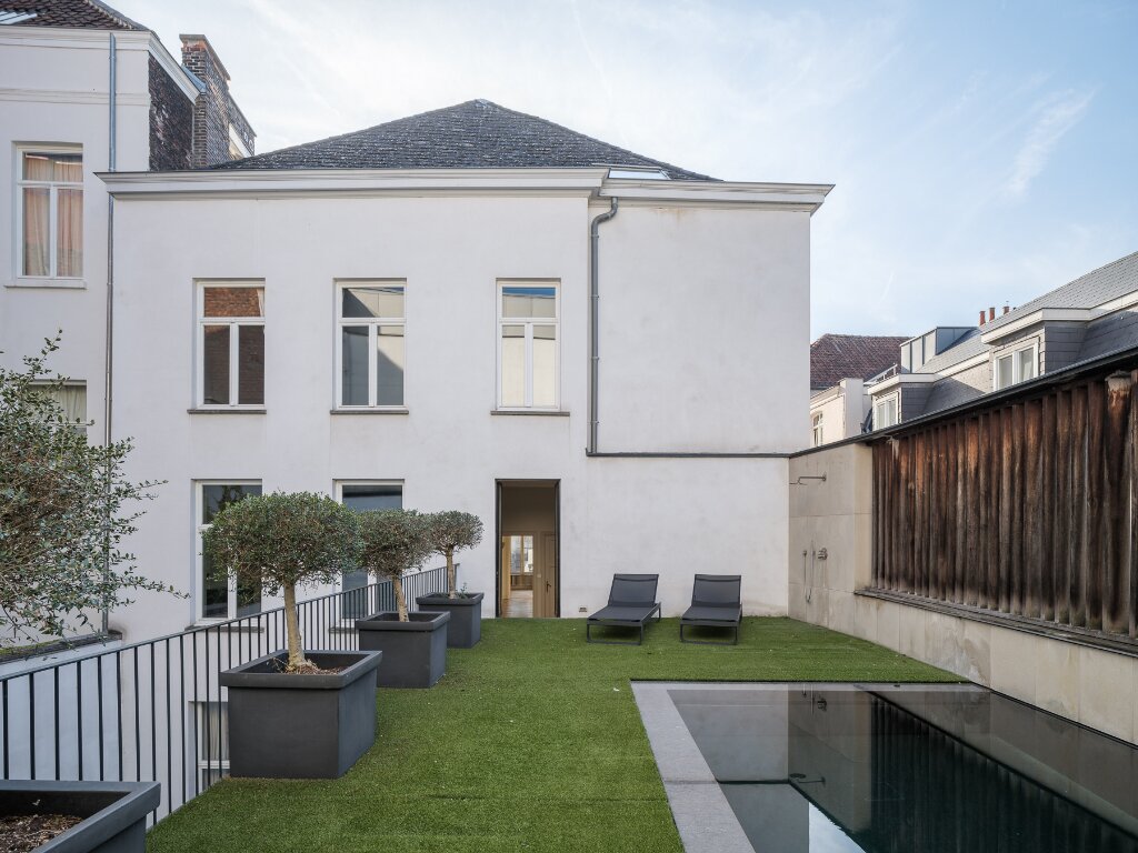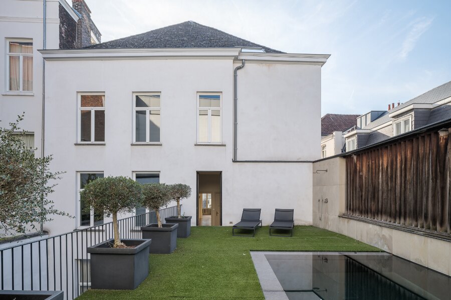 De bijzondere eigendom fungeert als een eiland van rust in het bruisende centrum en beschikt over een zeer privatief karakter. Unieke elementen zijn het verhoogde buitenzwembad en de parkeermogelijkheden op het terrein dewelke bijdragen tot de exclusiviteit van de woning.