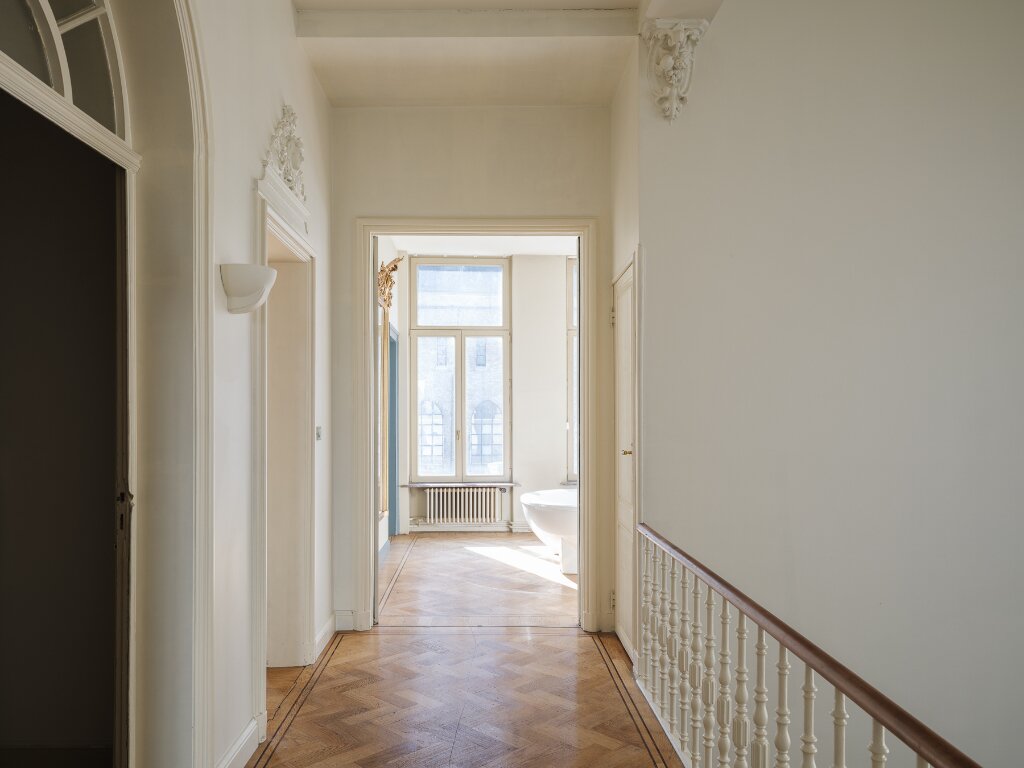 De neoclassicistische herenwoning onderging een doorgedreven verbouwing waarbij men de symbiose tussen oud en nieuw perfect wist te balanceren. Het groot volume van de woning geeft ook bijkomende mogelijkheden naar invulling en indeling.