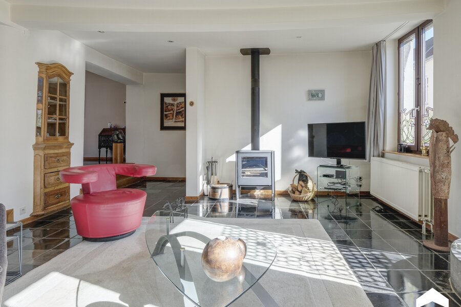 - Open leef- en eetruimte met houtkachel, handgemaakte radiatoren en natuurlijk lichtinval