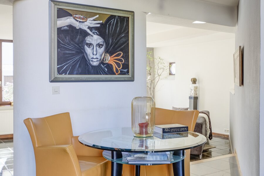harmante woning is gelegen in het centrum van Tongeren, aan het toeristische "Begijnhof". De woning is een vastgesteld bouwkundig erfgoed, doch heeft dit beperkte juridische invloed daar de woning in de jaren 90 een grote renovatie heeft ondergaan waarbij de authentieke elementen zo goed als mogelijk bewaard zijn gebleven. De woning bevindt zich op wandelafstand van scholen, winkels, het openbaar vervoer en het park "De Motten".