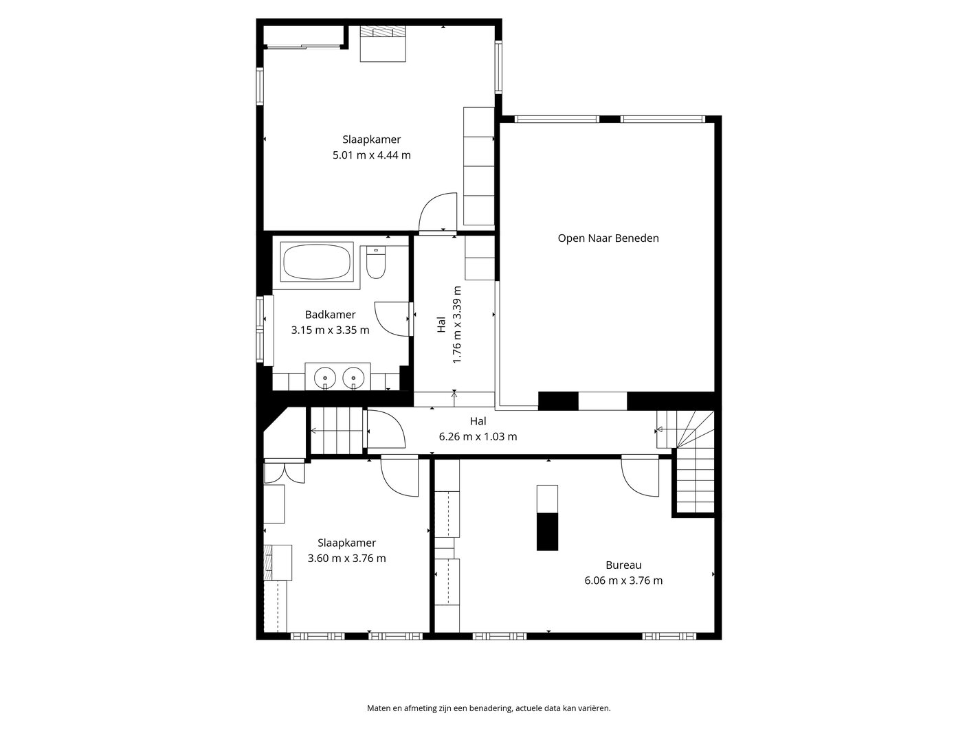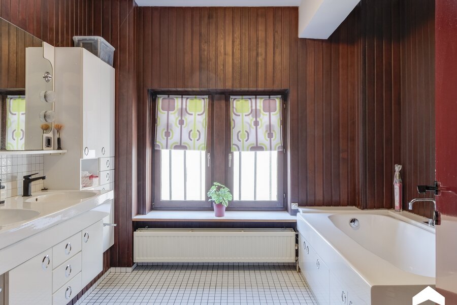 - Badkamer 1 (dubbele wastafel en bad)