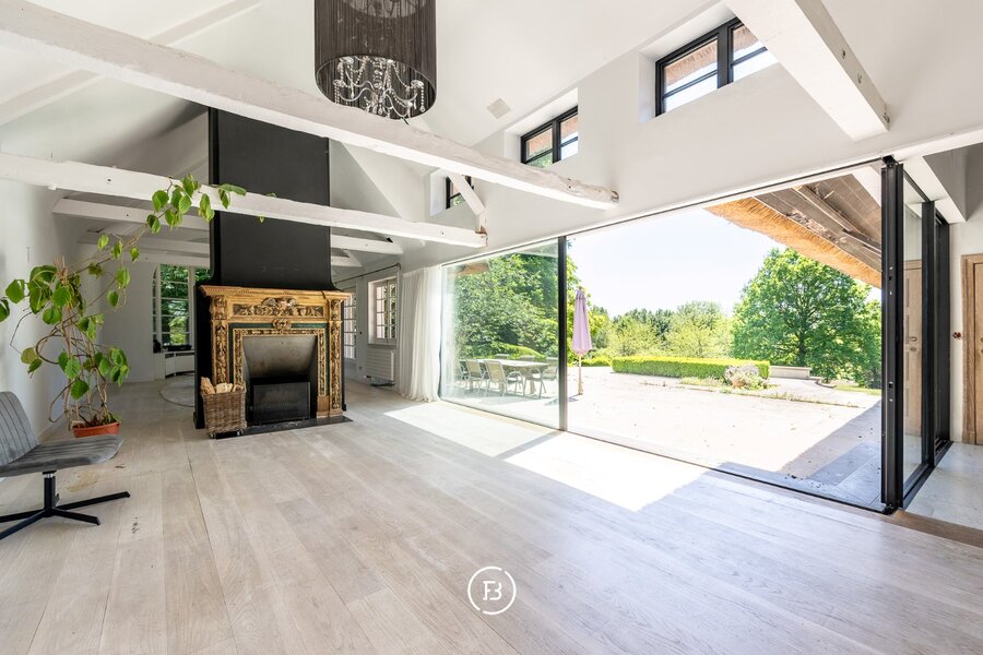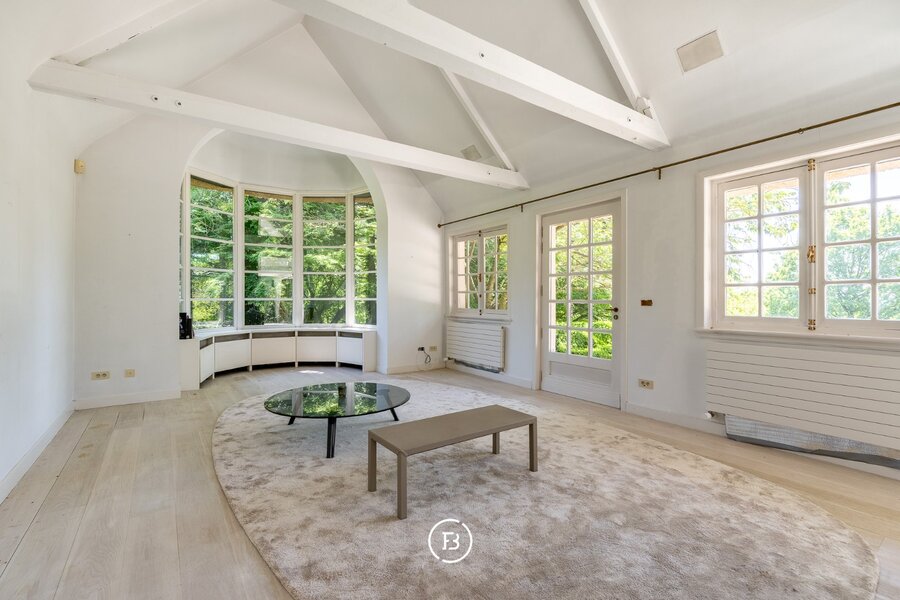 Op een uitzonderlijke ligging op de Scherpenberg, midden in het groen en met volledige privacy, bevindt zich deze karaktervolle villa op een perceel van 12.203 m². Met een bewoonbare oppervlakte van maar liefst 503 m², biedt deze woning een zeldzame combinatie van ruimte, licht en architecturale charme. De eigendom vereist een verdere renovatie, maar beschikt reeds over belangrijke vernieuwingen: een recent geplaatst rieten dak, een volledig nieuwe keuken, vloerverwarming en zonnepanelen.