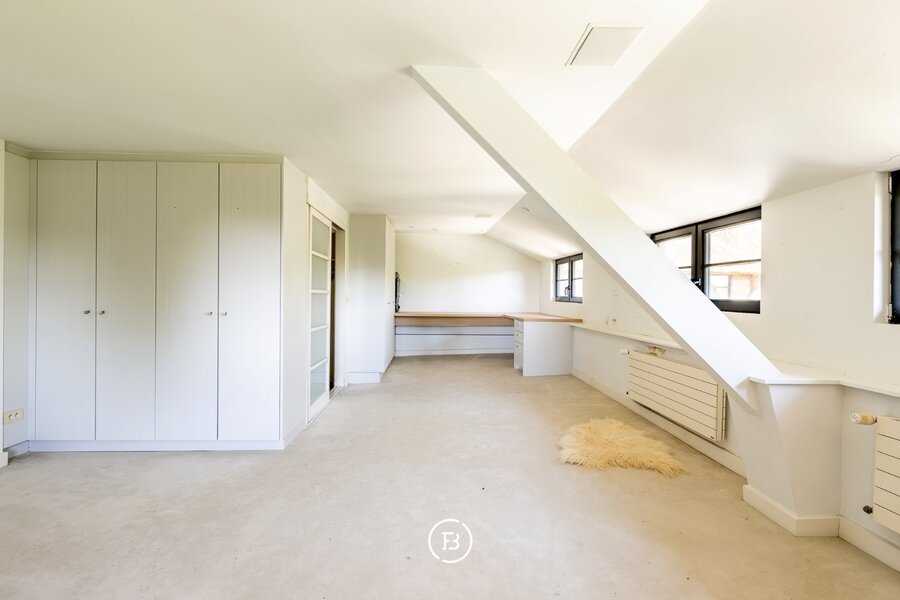Dankzij de verschillende ingangen, de aparte leefdelen en het royale volume is deze eigendom perfect inzetbaar als kangoeroewoning of voor de uitoefening van een vrij beroep. De woning deed jarenlang dienst als woonst en atelier van een gerenommeerd kunstenaar — het karakter en de potentie zijn dan ook overduidelijk aanwezig voor wie op zoek is naar een unieke woonplek met ziel en toekomst.