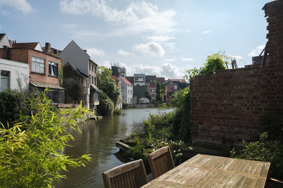 Bijzondere herenwoning (te renoveren) met een unieke ligging aan het water.