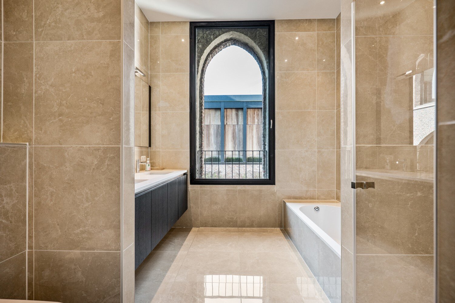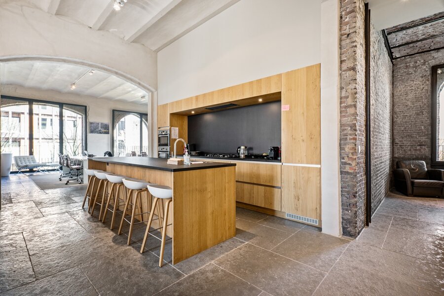 Deze loft, momenteel ingericht als kantoorruimte maar bestemd als wooneenheid, biedt een zeldzame combinatie van authenticiteit, ruimte en licht. Dankzij de plafondhoogte van ca. 3,90 meter geniet de loft van een bijzonder ruim en open karakter. De karaktervolle boogramen, de robuuste materialen en de subtiele afwerking geven het geheel een tijdloze elegantie.