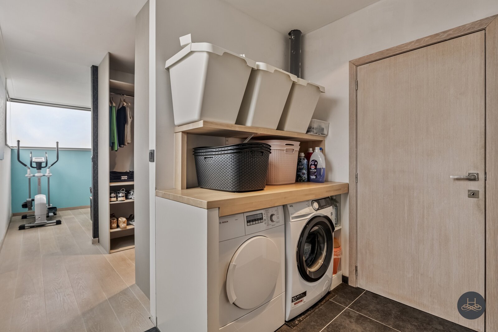 Berging/wasplaats met praktische opbergruimte.