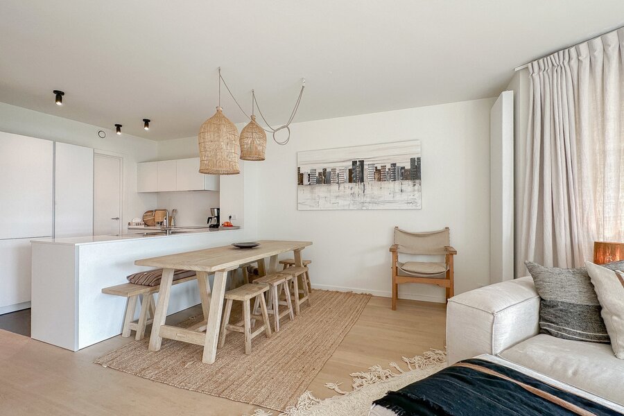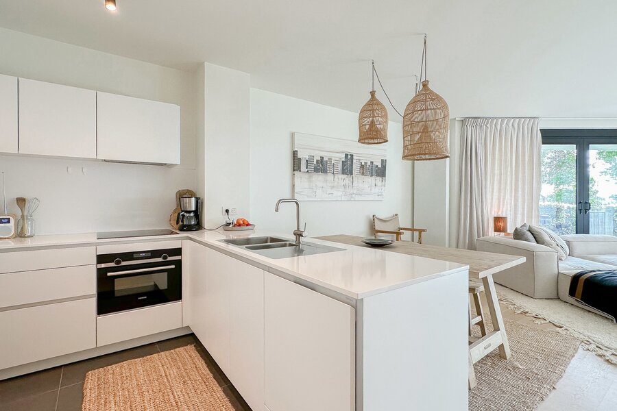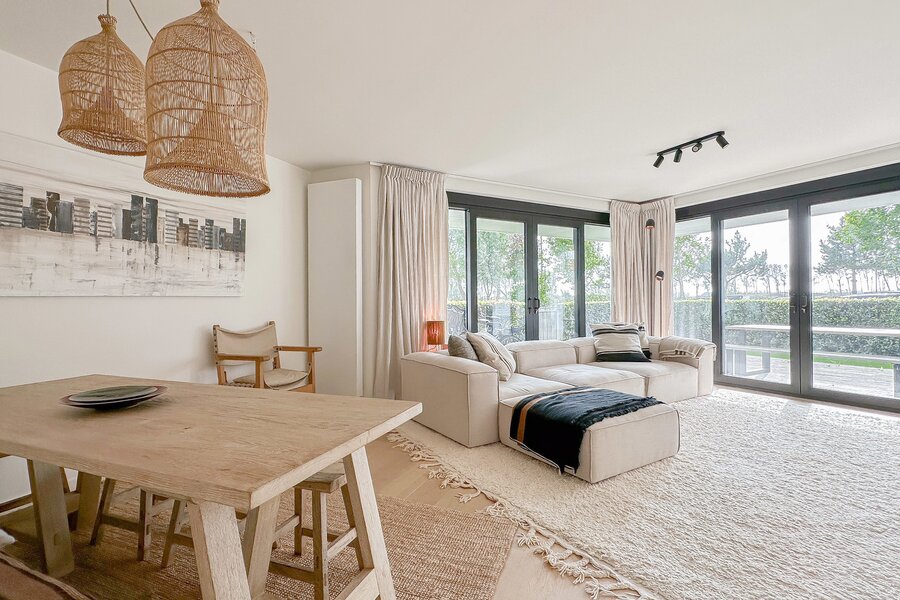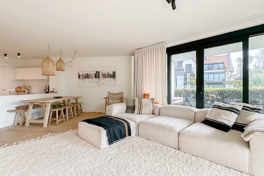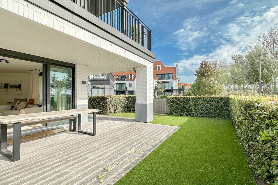 HOEKAPPARTEMENT met TUIN en zonnig terras, en prachtig open zicht op het meer van DUINENWATER...