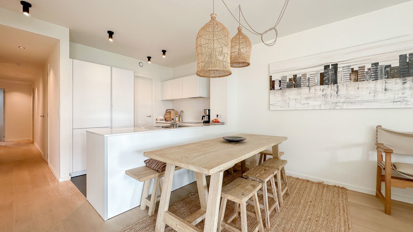 Samenstelling: Inkomhal met vestiaire en gastentoilet. Open keuken, voorzien van alle hedendaagse comfort. Ruime berging met aansluiting wasmachine/droogkast. Aangename eetkamer met aansluitend een zeer lichtrijke woonkamer. Er zijn veel raampartijen die uitgeven op het zonnige terras.
