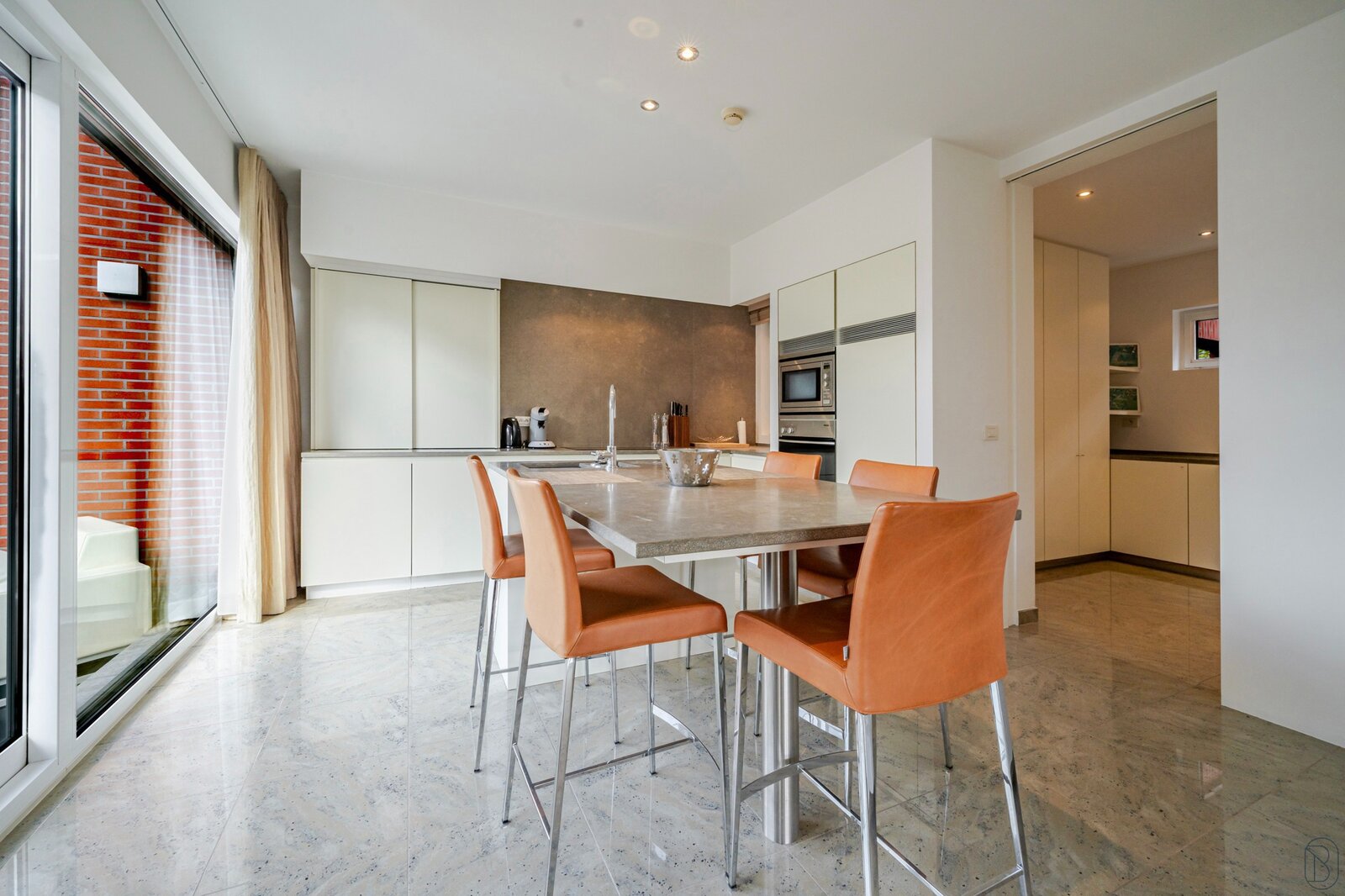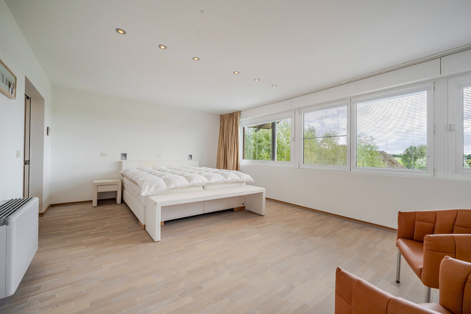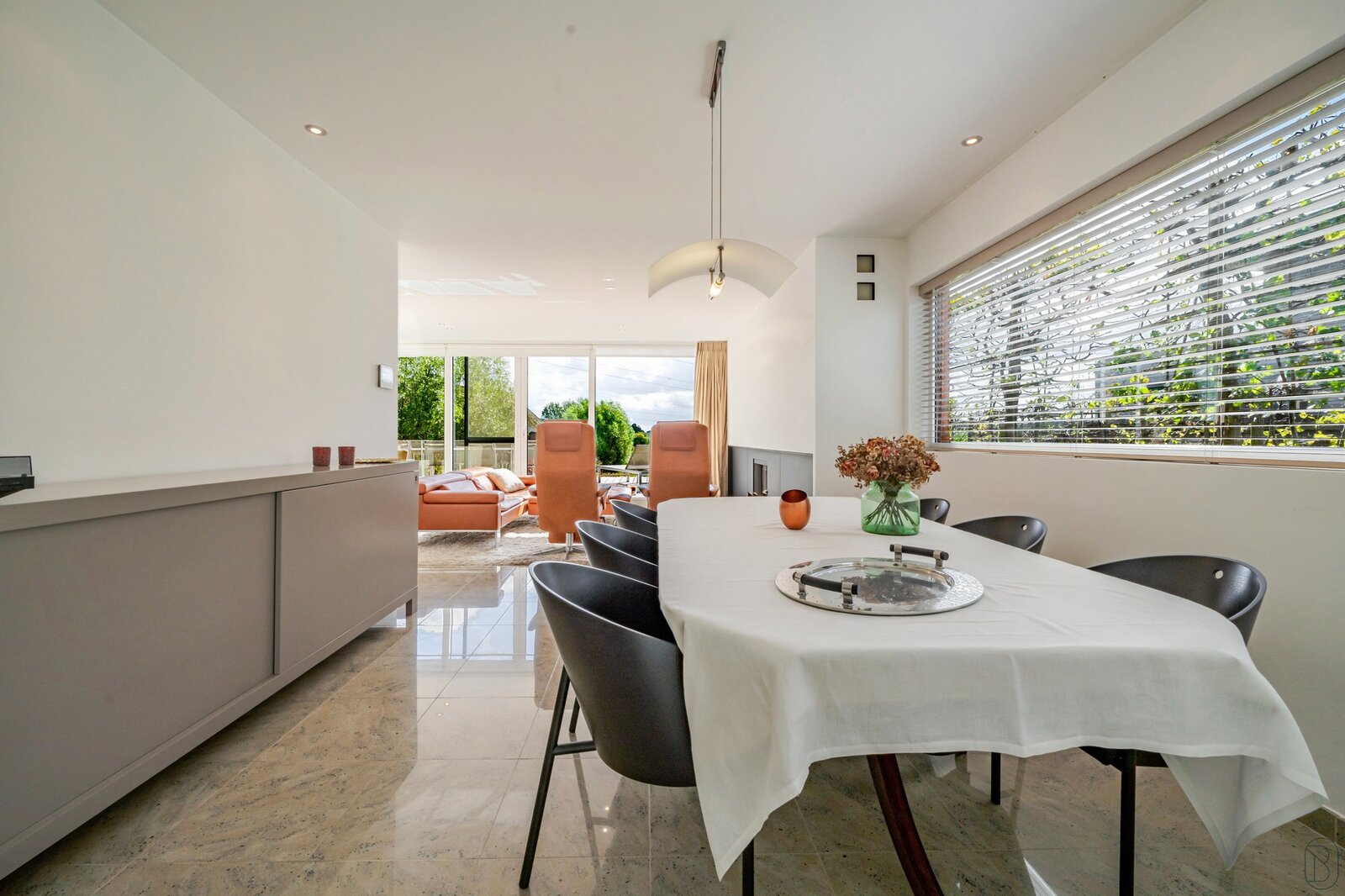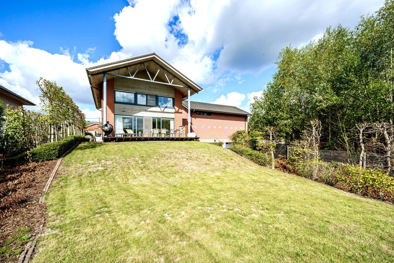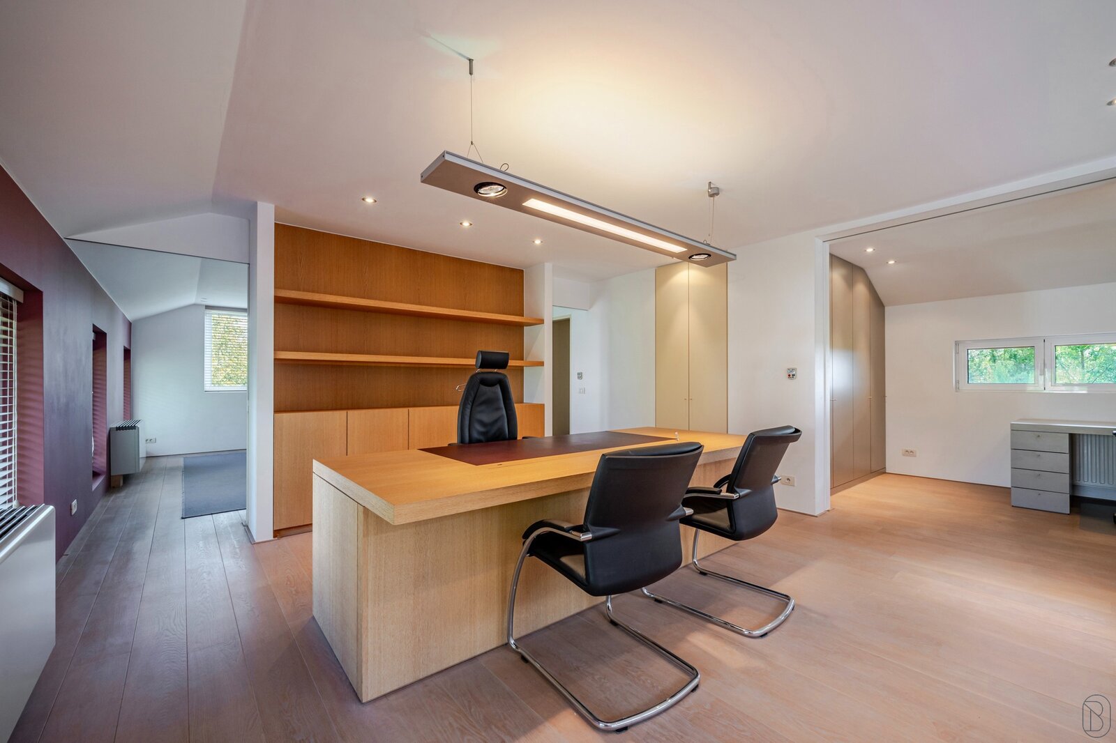 Grote degelijke villa met extra kantoor/prakijkvleugel, handige parking, en volledig onderkelderd. Mooi terras en aangename tuin met een prachtig zicht op groen.