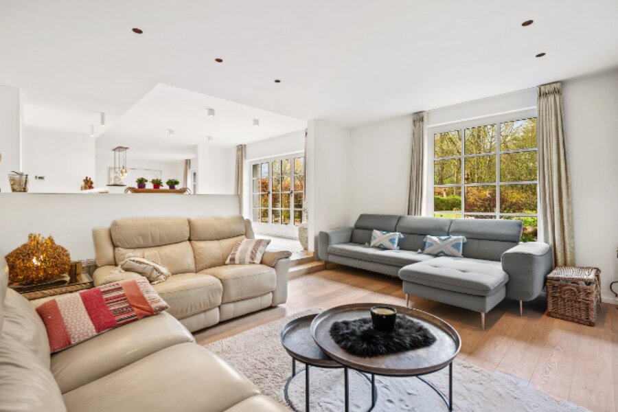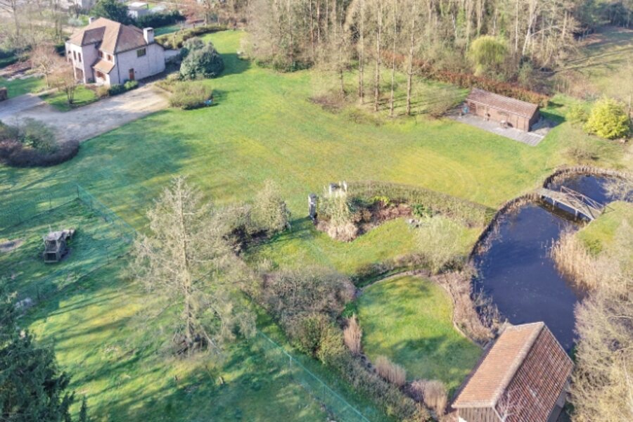 Exclusief achterin gelegen ruime villa op een uniek en rustig gelegen perceel van 1ha45a02ca met vijver. De toegangsweg bevindt zich langs de Grasheideweg nr. 28H.