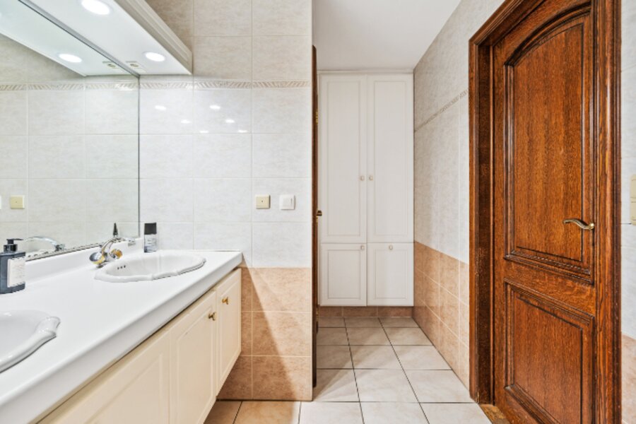 Bouwjaar: 1995. Totale vloeroppervlakte: 336m² + kelder 44m² + zolder (via luik). Ki: € 2.389,-