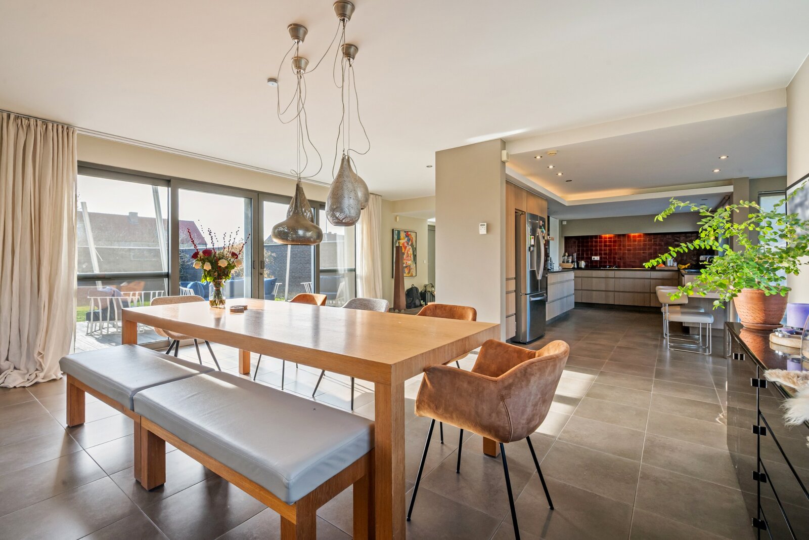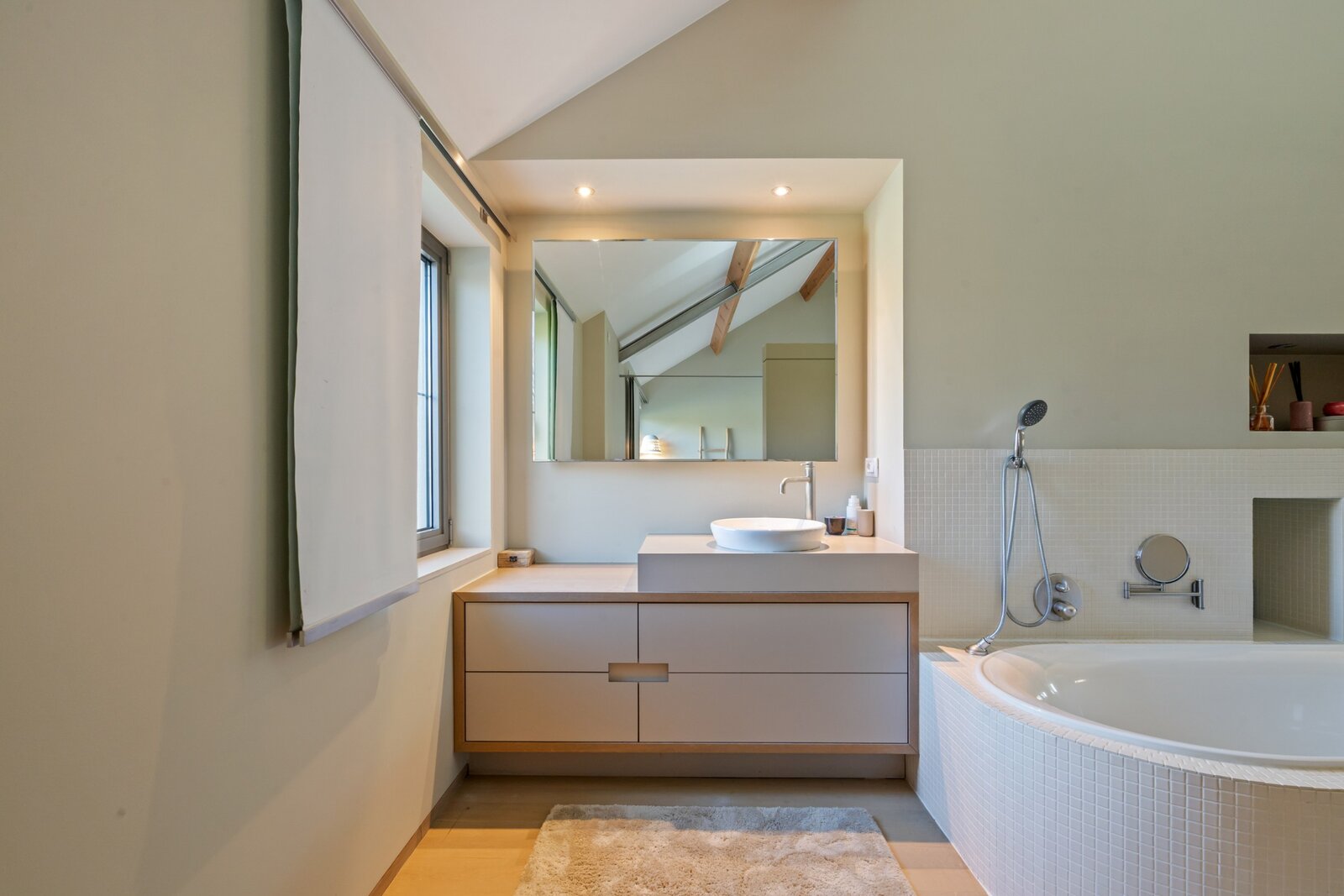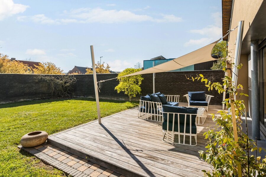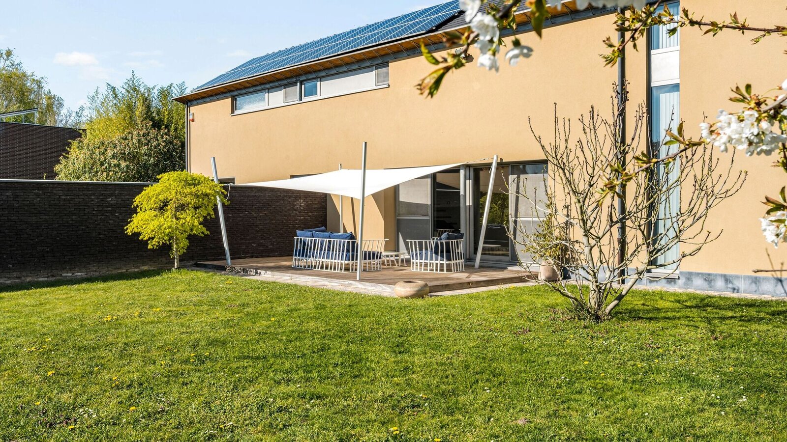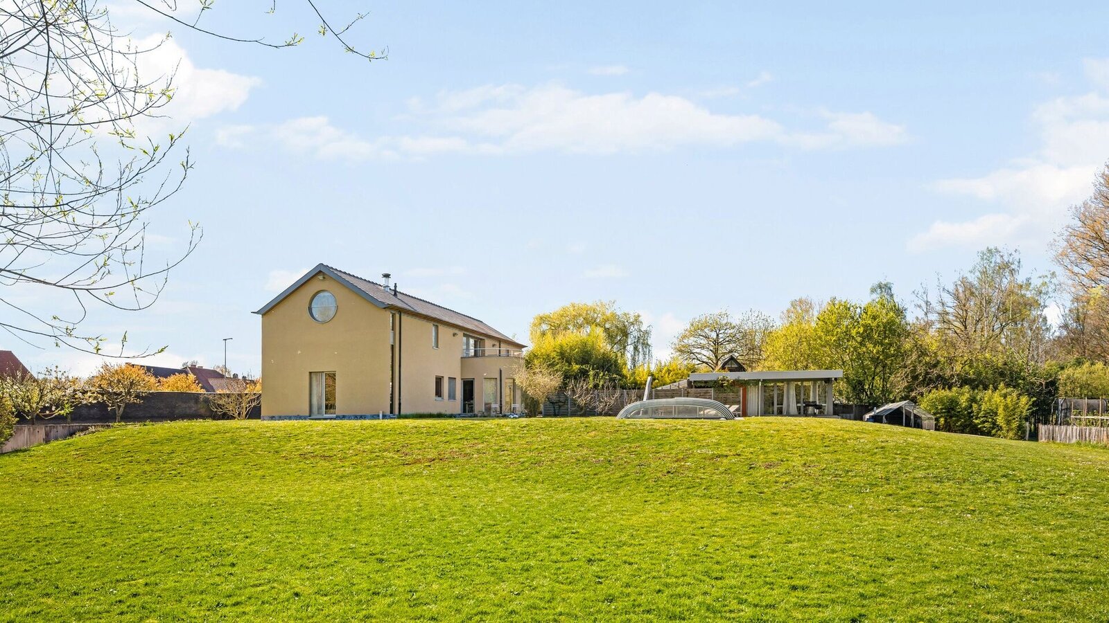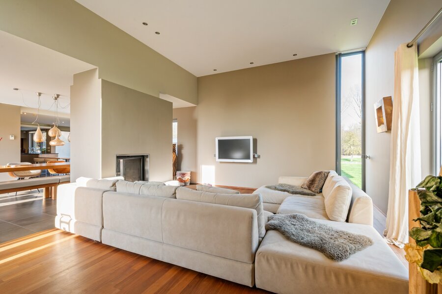 De ruime goed uitgeruste open keuken met prachtig zicht op de natuurlijke tuin en het omliggende groen. Hier kookt en leeft u met de seizoenen als decor. Open leefruimte met grote raampartijen en aan twee zijden zicht op de tuin en de terrassen, wat zorgt voor een uitzonderlijke connectie tussen binnen en buiten.Vooraan geniet u van een ommuurde, beschutte zone, ideaal voor extra privacy en geborgenheid. Praktische wasplaats/berging met voldoende opbergruimte.