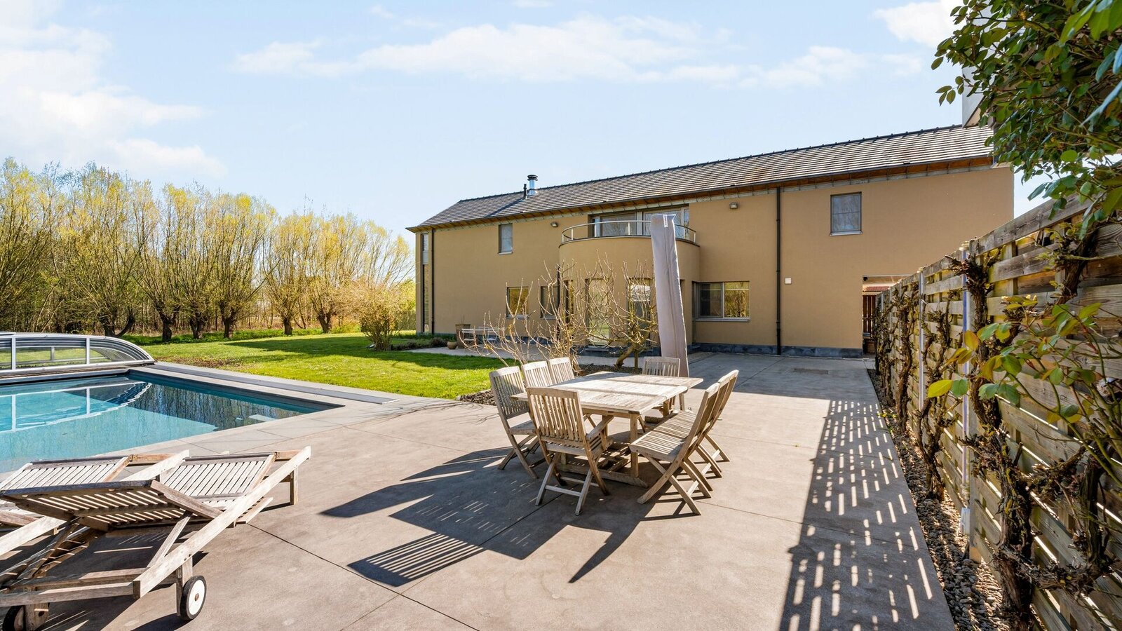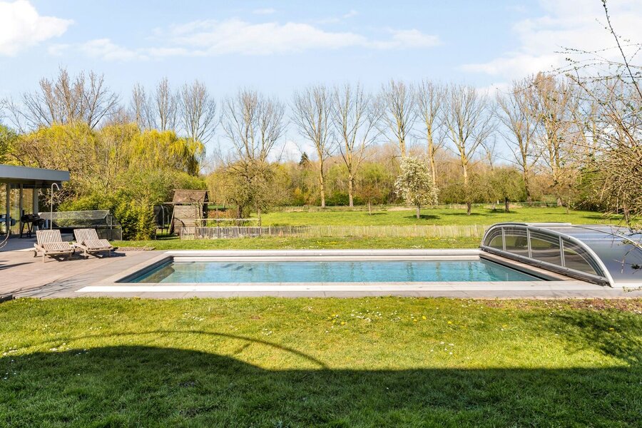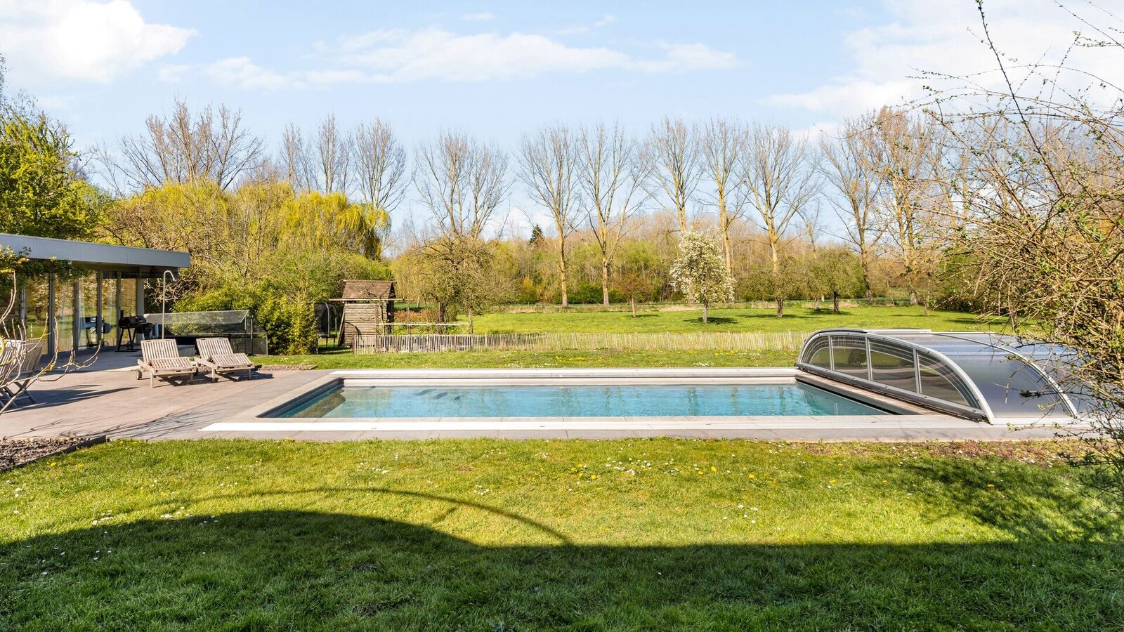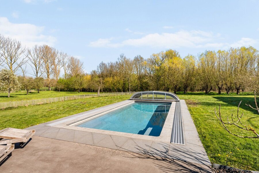 Het verwarmde zwembad met overkapping maakt het plaatje compleet. In alle seizoenen geniet u hier van ontspanning, rust en comfort, volledig in harmonie met de natuur.