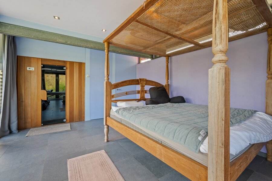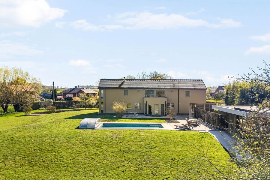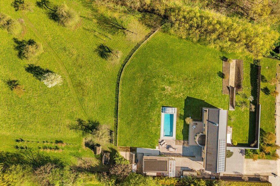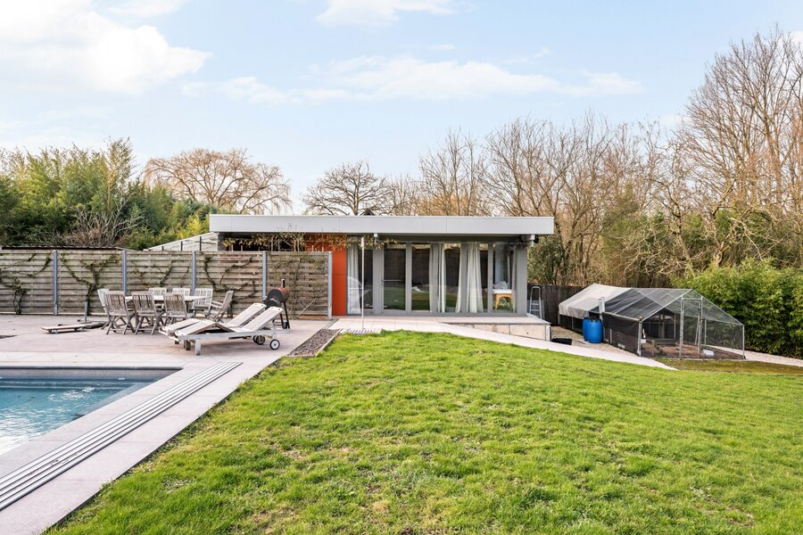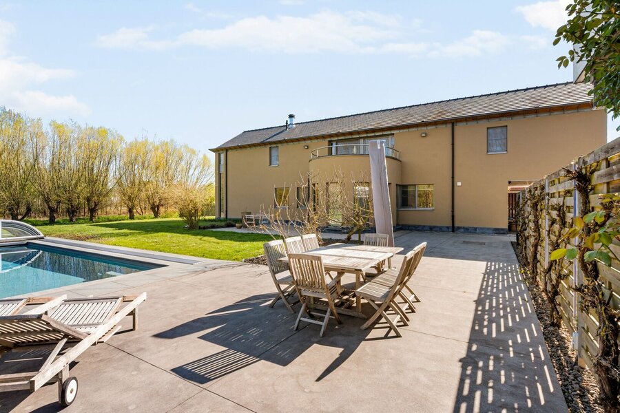 Het verwarmde zwembad met overkapping maakt het plaatje compleet. In alle seizoenen geniet u hier van ontspanning, rust en comfort, volledig in harmonie met de natuur.