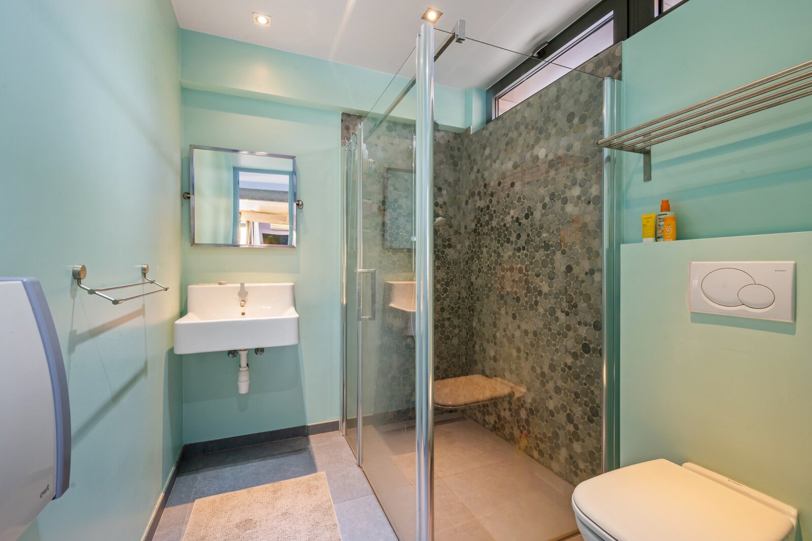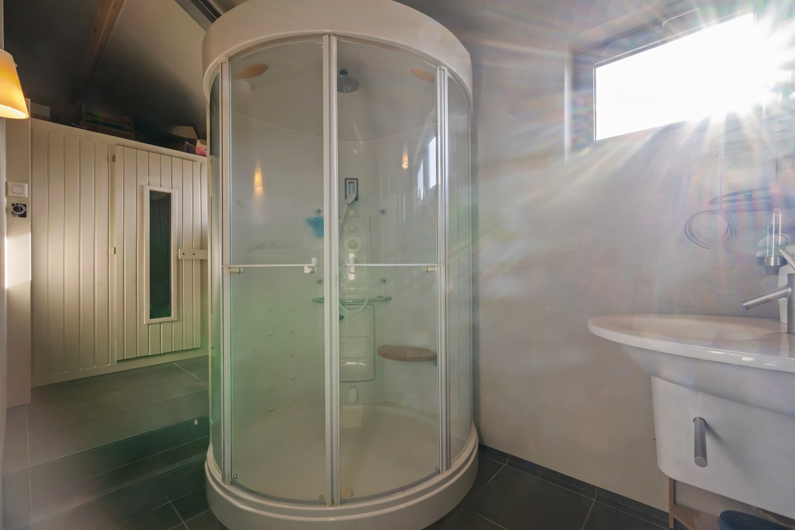 Aparte badkamer uitgerust met douche, toilet, wastafel én een sauna – pure wellness in eigen huis.