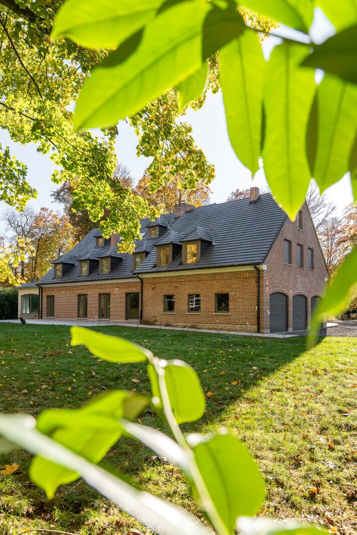 Een aangrenzend bijgebouw met een drievoudige garage completeert het geheel en kan een gastenappartement met 2 slaapkamers of een zelfstandig kantoor herbergen.