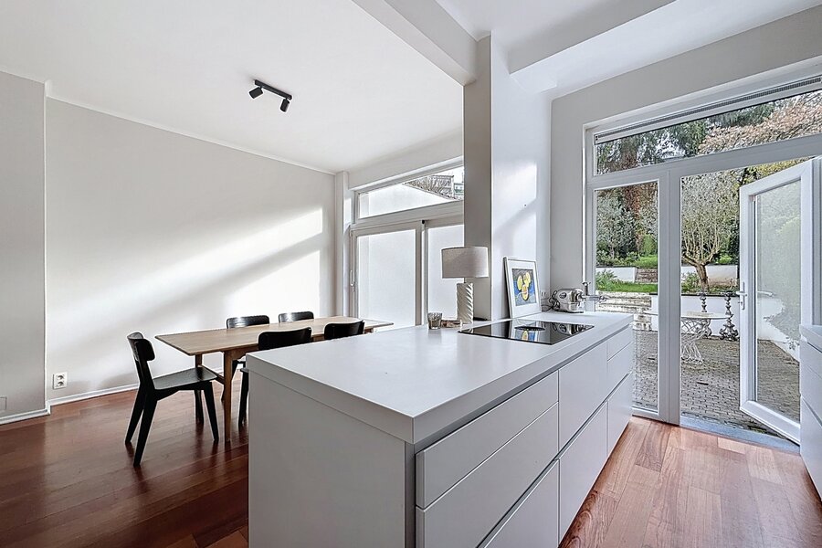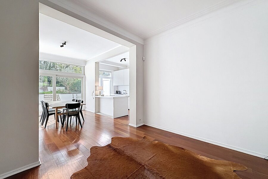 Vlakbij het Lycée Français en de wijk Dieweg, prachtig huis in perfecte staat met een totale oppervlakte van ± 225 m². Het bestaat uit een hal, een ruime en lichte woonkamer (± 27,65 m²), een eetkamer (± 12,60 m²), een volledig uitgeruste BULTHAUP-keuken, een nachthal, 4 mooie slaapkamers (± 22,45 m², ± 22,35 m², ± 13,40 m² en ± 13,40 m²), 2 kantoren, een badkamer en een doucheruimte. Prachtig terras en een grote tuin van 2 are op het oosten. Kelder en twee parkeerplaatsen voor het huis. Veiligheidsdeur, alarm en dubbele beglazing. Alle kosten zijn individueel. PEB G. Te ontdekken!
