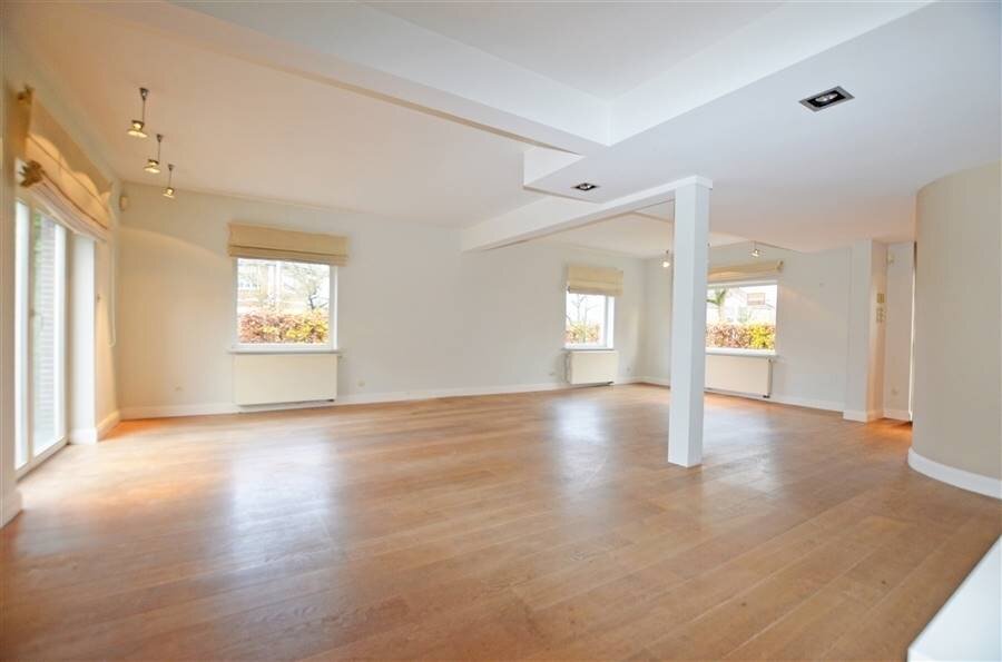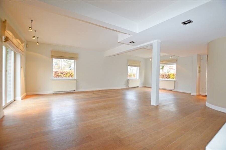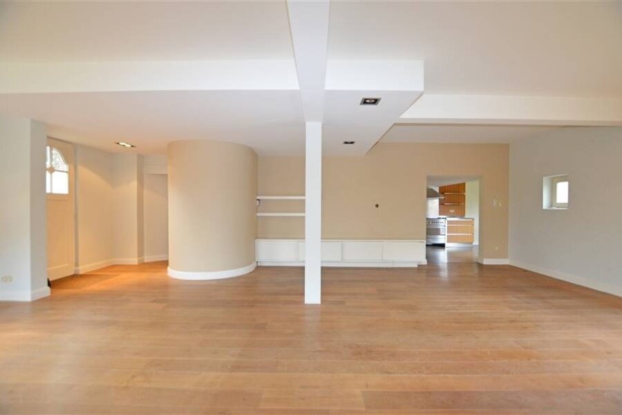 De inkomhal met gastentoilet en vestiaire leidt naar het leefgedeelte. Dit bestaat uit een grote open living met eet- en zitkamer. Aansluitend is er de open ingerichte leefkeuken met gasvuur die toegang biedt tot het aangename zuidgeoriënteerde terras/tuin. De leefruimtes genieten van veel lichtinval door de vele raampartijen. Het gebruik van parket, warme kleuren en kwalitatieve materialen zorgen voor een gezellige woonsfeer.
