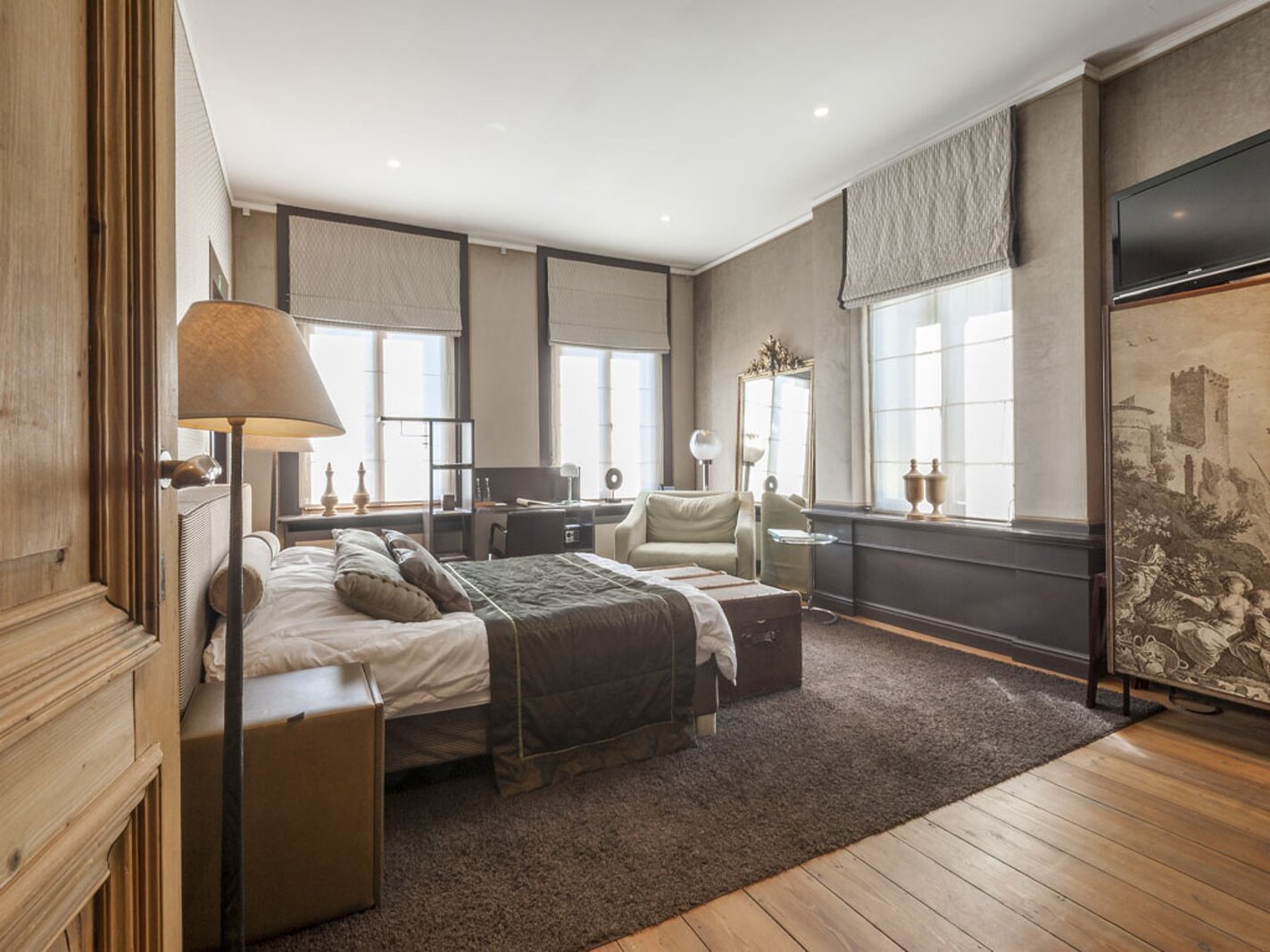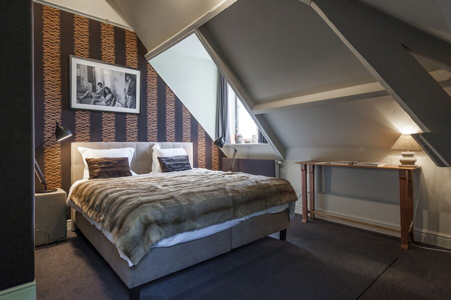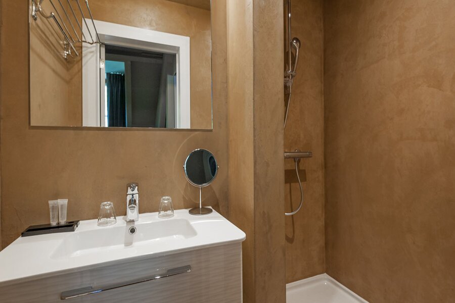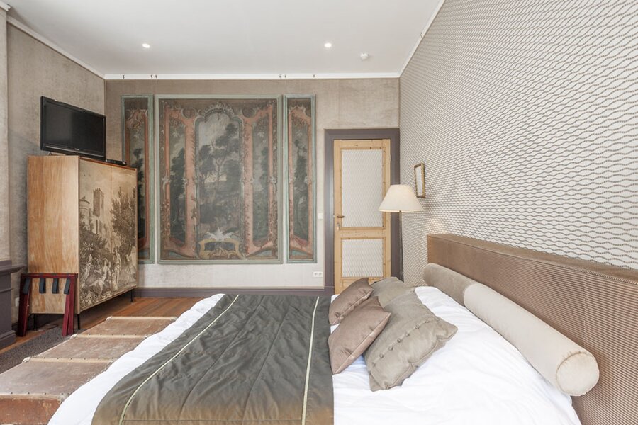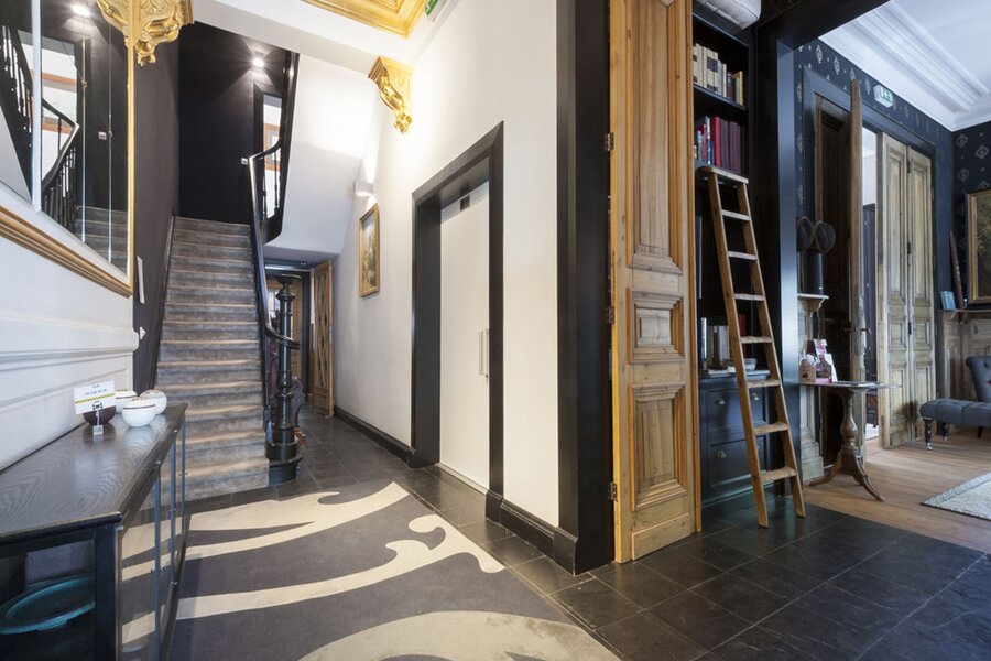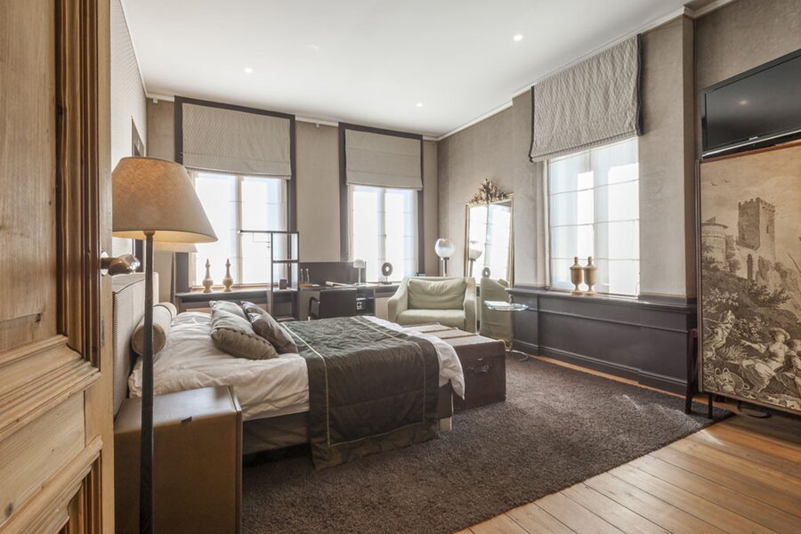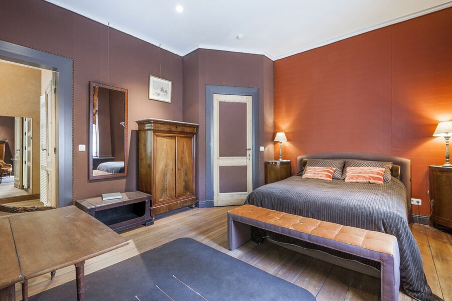 Met lift of trap bereikt u de verdiepingen. Op de eerste en tweede verdieping bevinden zich telkens twee suites (slaapkamer met badkamer). De derde verdieping omvat een duplex appartement (2 slaapkamers, badkamer, leefruimte) en een studio. Hier is overal airco aanwezig.