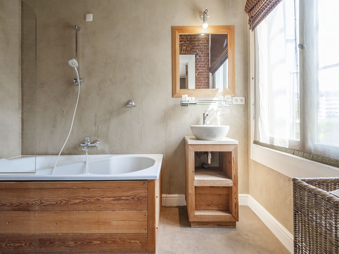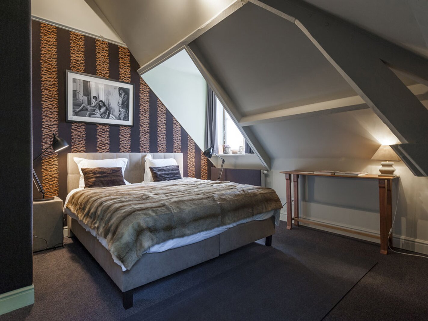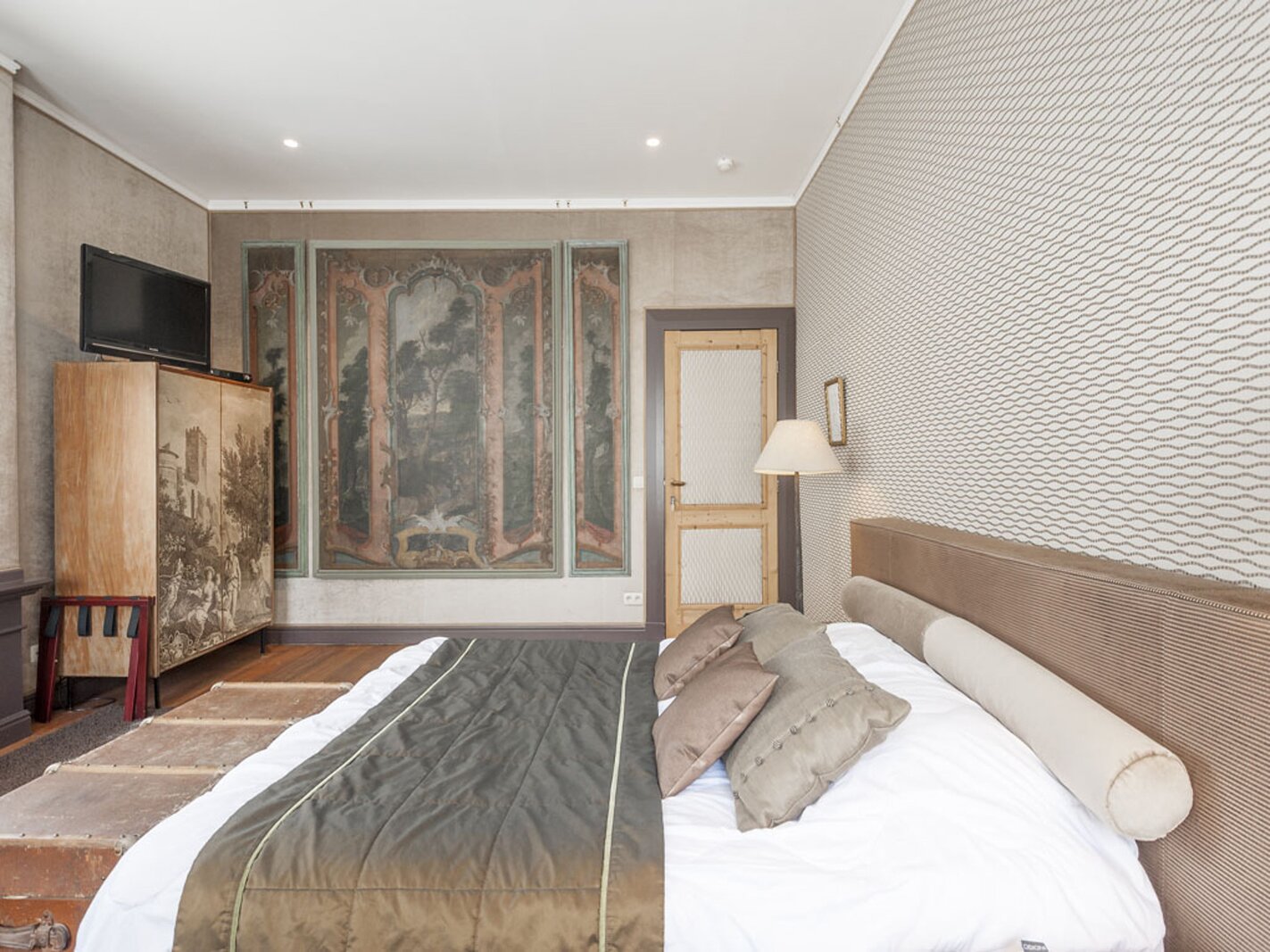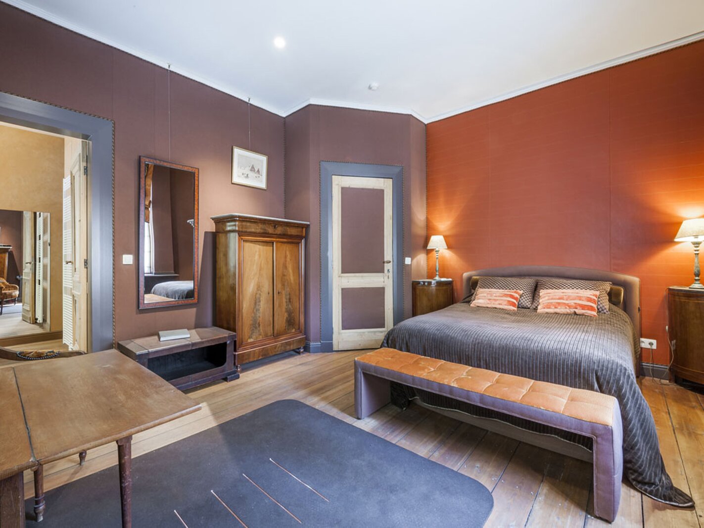 Met lift of trap bereikt u de verdiepingen. Op de eerste en tweede verdieping bevinden zich telkens twee suites (slaapkamer met badkamer). De derde verdieping omvat een duplex appartement (2 slaapkamers, badkamer, leefruimte) en een studio. Hier is overal airco aanwezig.