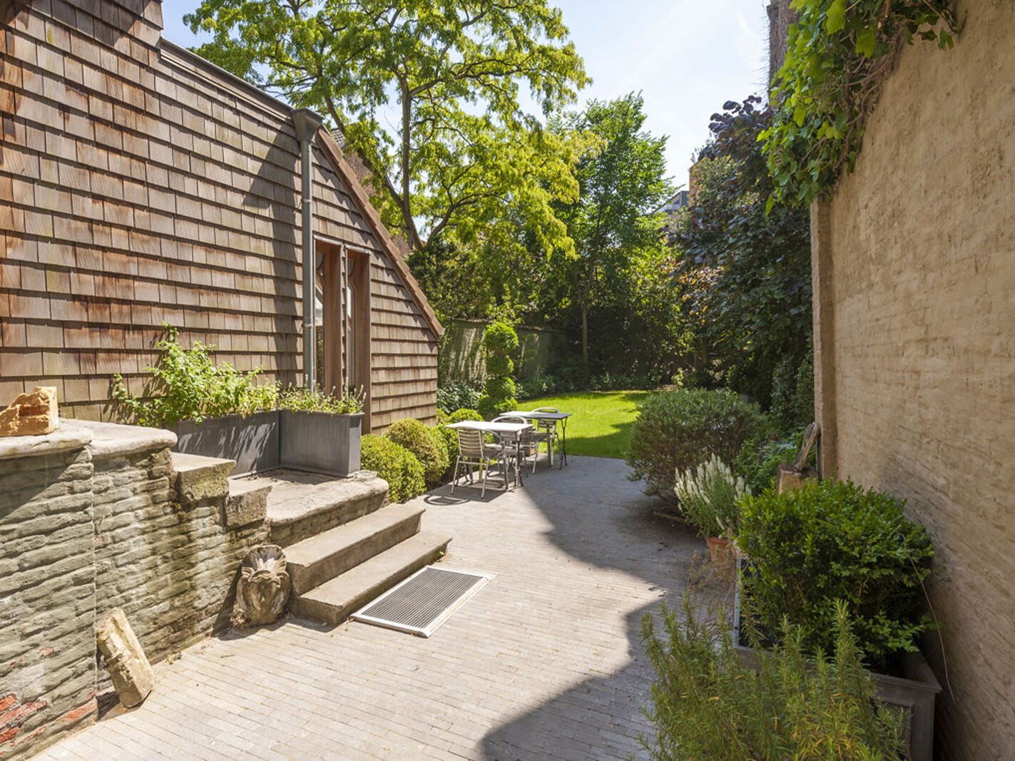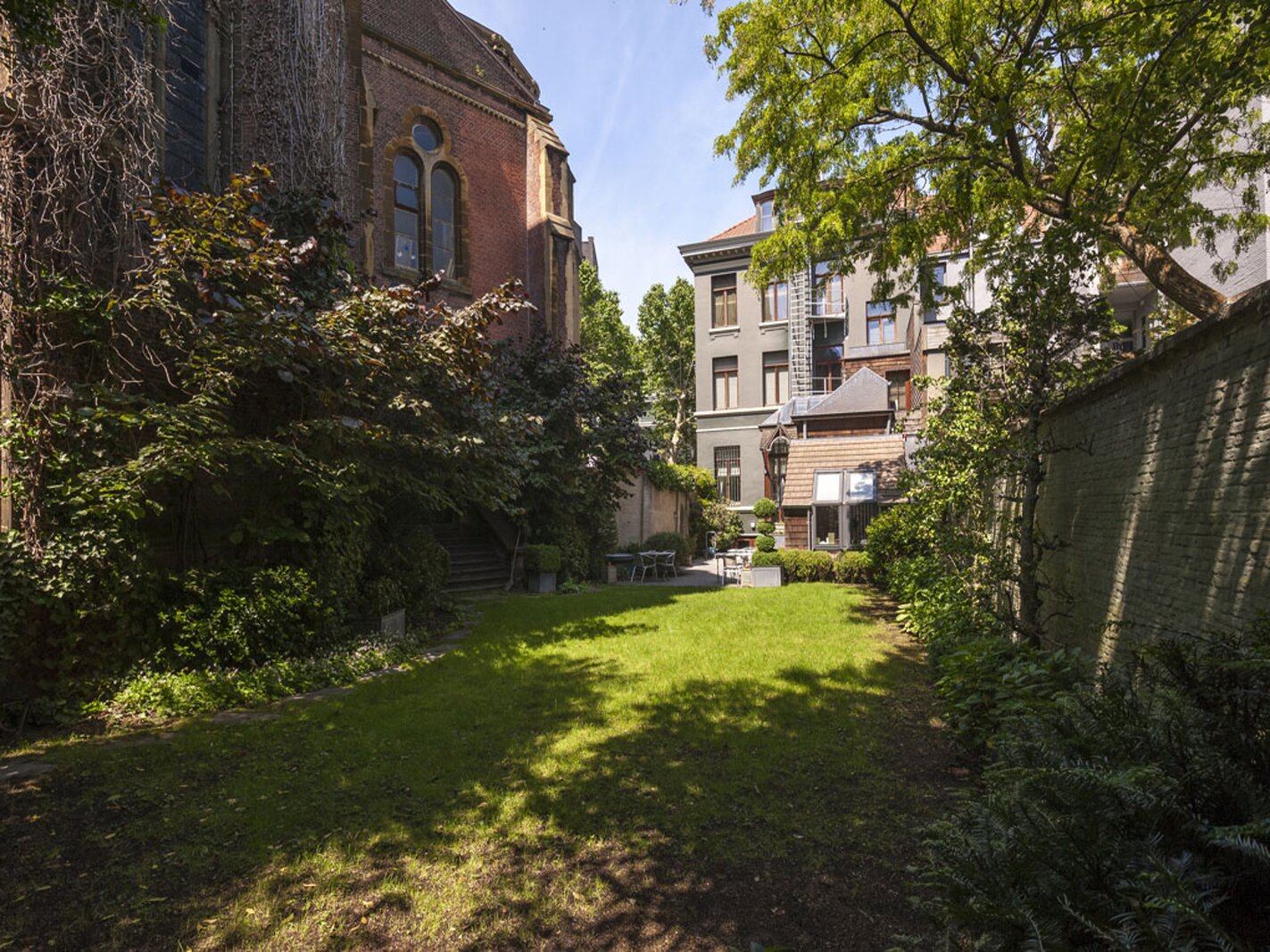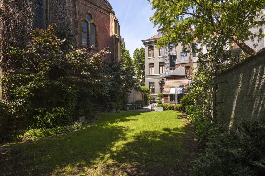 De woning is uitgerust met lift, alarm, dubbele beglazing en airco. De zonnige tuin (266 m²) zonder inkijk biedt een prachtig zicht op het kerkgebouw. Daarnaast is er een afgesloten parking met plaats voor 7 à 9 wagens. Ook geschikt als boutique hotel.