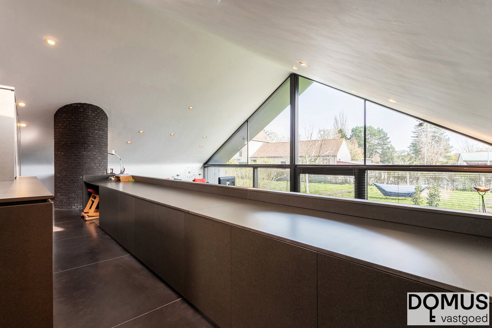 De woning is praktisch en stijlvol ingericht met kwalitatieve ingemaakte kasten en een volledig uitgeruste, ingemaakte keuken voorzien van alle hedendaagse toestellen. Aansluitend bevindt zich een ingebouwde bureauruimte met een aangenaam zicht op de tuin – ideaal voor thuiswerk of studie.