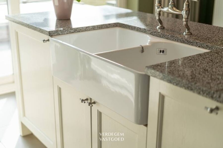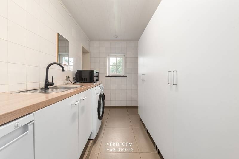 In de bijkeuken is er het comfort van maatwerk kasten, een extra wastafel en plaats voor een wasmachine en droogkast.