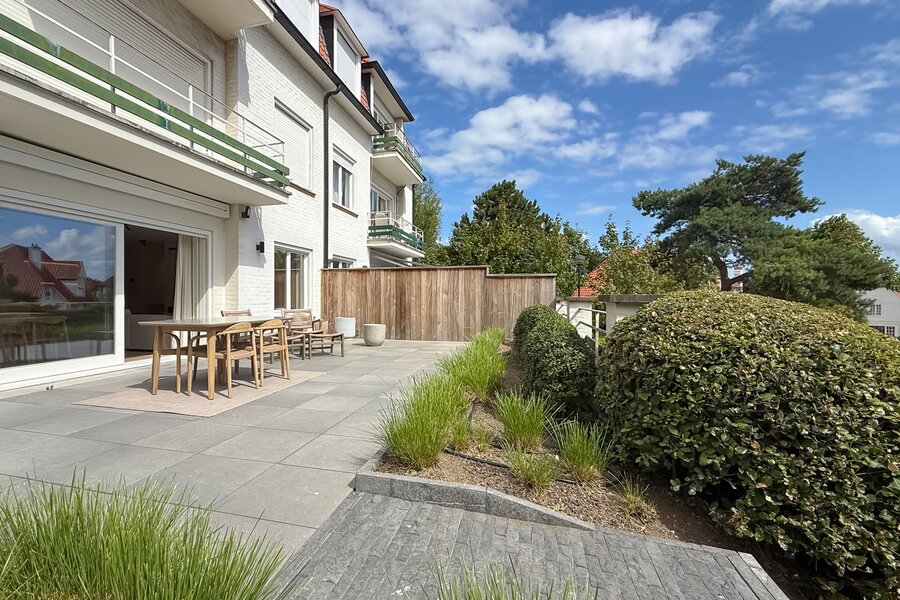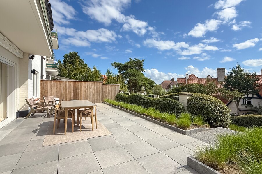 Luxueus tuinappartement met zonovergoten terrassen en verfijnde afwerking, op een toplocatie in hartje Knokke...