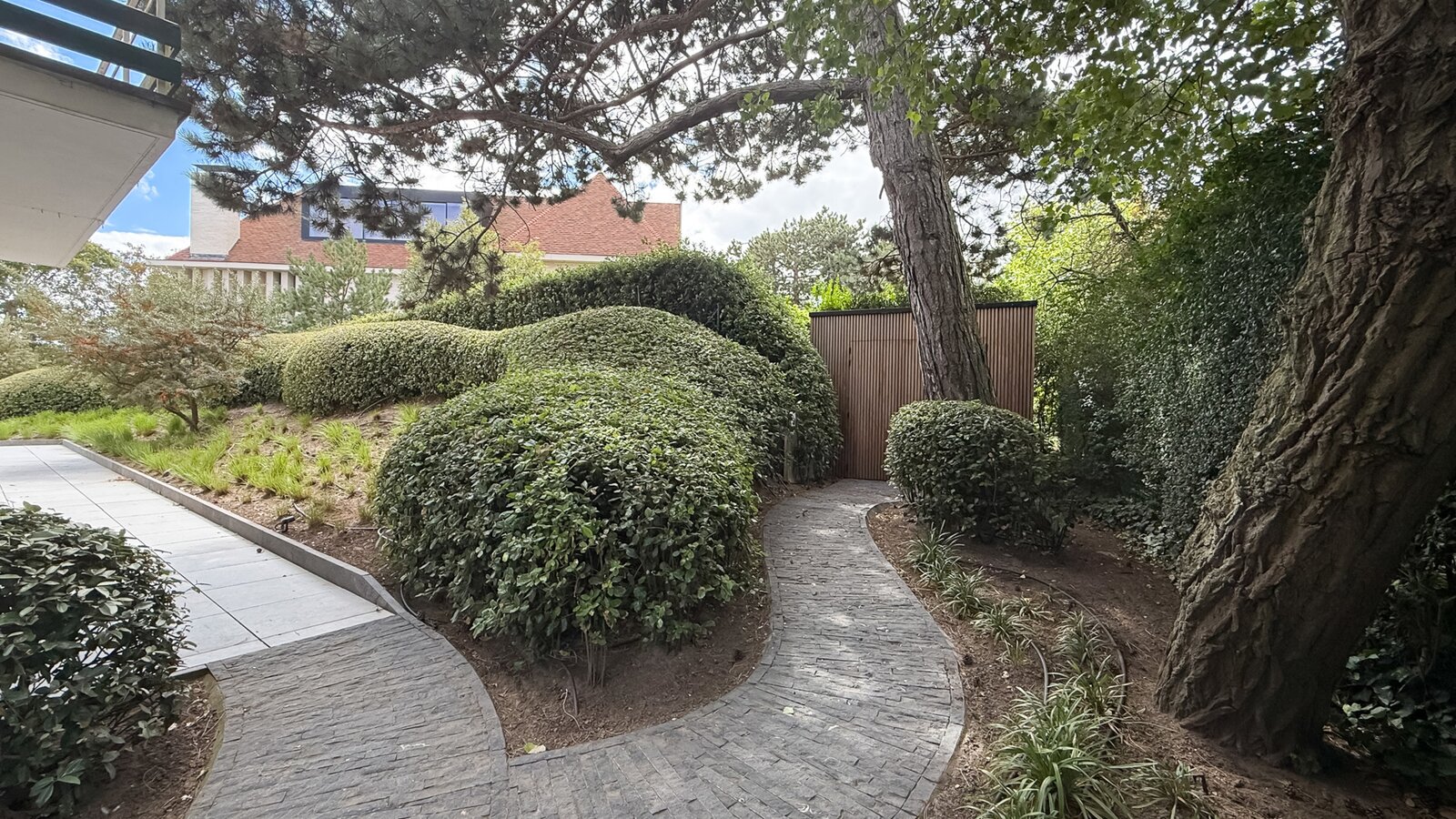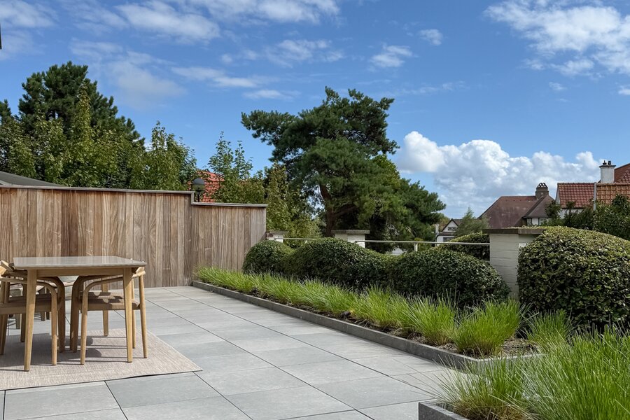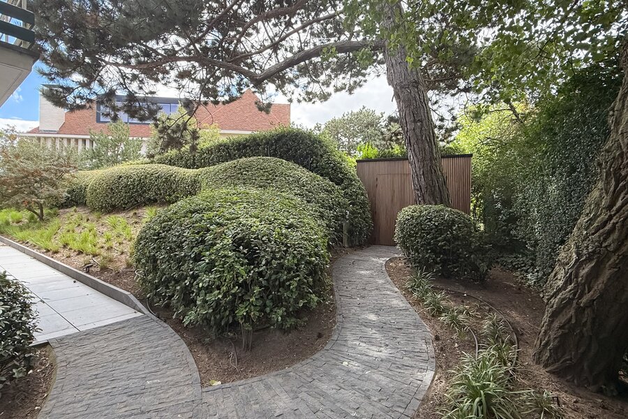 De tuin, ontworpen door Dominique Eeman, vormt een oase van sereniteit, waar groen en architectuur elkaar versterken. Dankzij de automatische besproeiing blijft dit buitenverblijf moeiteloos in topconditie, zodat u enkel hoeft te genieten van zon, stilte en een ongeëvenaarde woonervaring in het hart van Knokke.