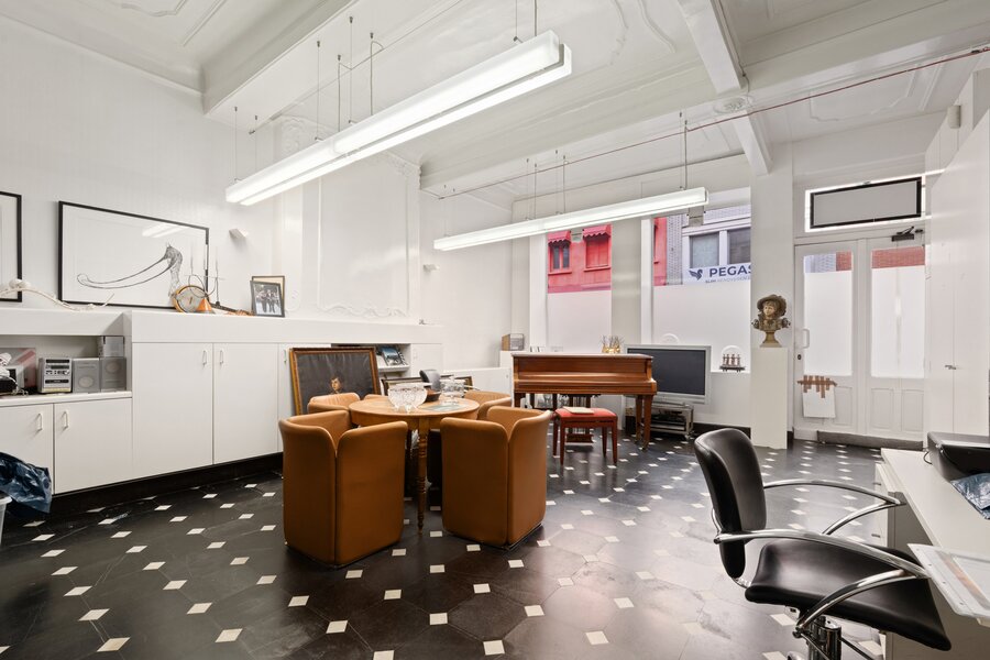 Op het gelijkvloers bevindt zich het handelsgedeelte met toegang langs de Krekelput. Aansluitend betreden we het private woongedeelte met een sfeervolle leefruimte en zitplaats, beide met zicht op de tuin en afgewerkt met originele parketvloeren en karaktervolle open haarden.