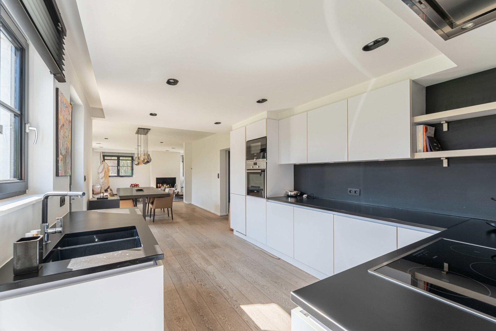Construite sur un magnifique terrain de 17ares 70centiares parfaitement orienté SUD-EST, cette maison rénovée avec goût et avec des matériaux de qualité développe 200m² habitables (+ garage = +/- 250m2 construits). Au rez-de-chaussée, le hall d'entrée avec WC visiteurs dessert un vestiaire/bureau de 7m² (placards sur mesure) ainsi qu'un magnifique espace de vie (+/- 60m2) : vaste salle à manger lumineuse et espace salon, le tout ouvert sur une cuisine moderne et super-équipée. Une arrière-cuisine/buanderie fonctionnelle (meubles sur mesure, cave à vin intégrée) complète cet espace. À l’étage, vous découvrirez une suite parentale d’exception (34 m²) comprenant : une chambre avec vue sur le jardin, un dressing sur mesure et une salle de bains (douche à l'italienne /baignoire îlot ovale). Deux belles chambres d’enfant disposent chacune de leur salle d’eau privative : une chambre (21m2) avec placards intégrés et une salle de douche attenante, (double lavabo, douche à l’italienne) ; une chambre (20m2) avec salle de bains attenante (baignoire îlot ovale). Un garage double complète cet intérieur élégant et fonctionnel. À l'extérieur, les futurs propriétaires profiteront d’une vaste terrasse ensoleillée de 70m2, ainsi que d’un jardin clôturé et soigneusement entretenu. Un cadre alliant charme, confort et intimité, avec une agréable vue boisée à l’arrière. DIVERS : PEB/B - Chauffage central au mazout - Châssis double vitrage - Electricité conforme - Portail automatisé - Point de charge pour véhicule électrique - Système d'alarme - Adoucisseur d'eau - Citerne d'eau de pluie avec groupe hydrophore (toilettes, machine à laver et extérieur) A découvrir sans tarder. Descriptif complet sur www.TRIOR.be