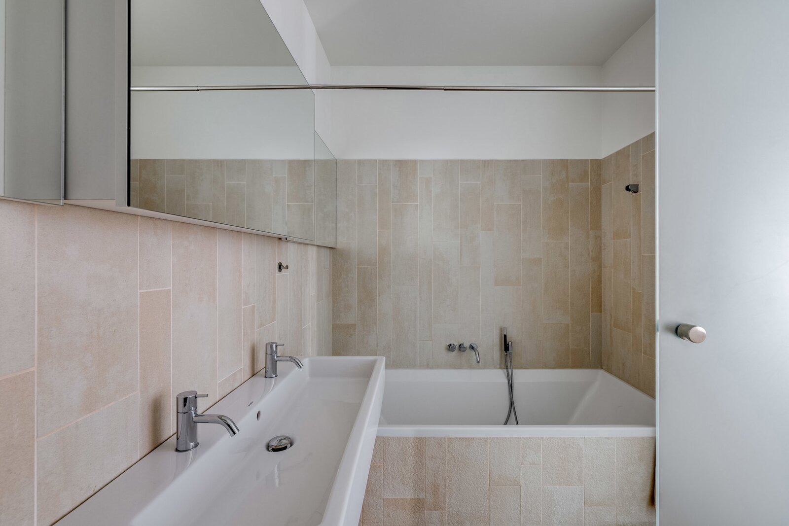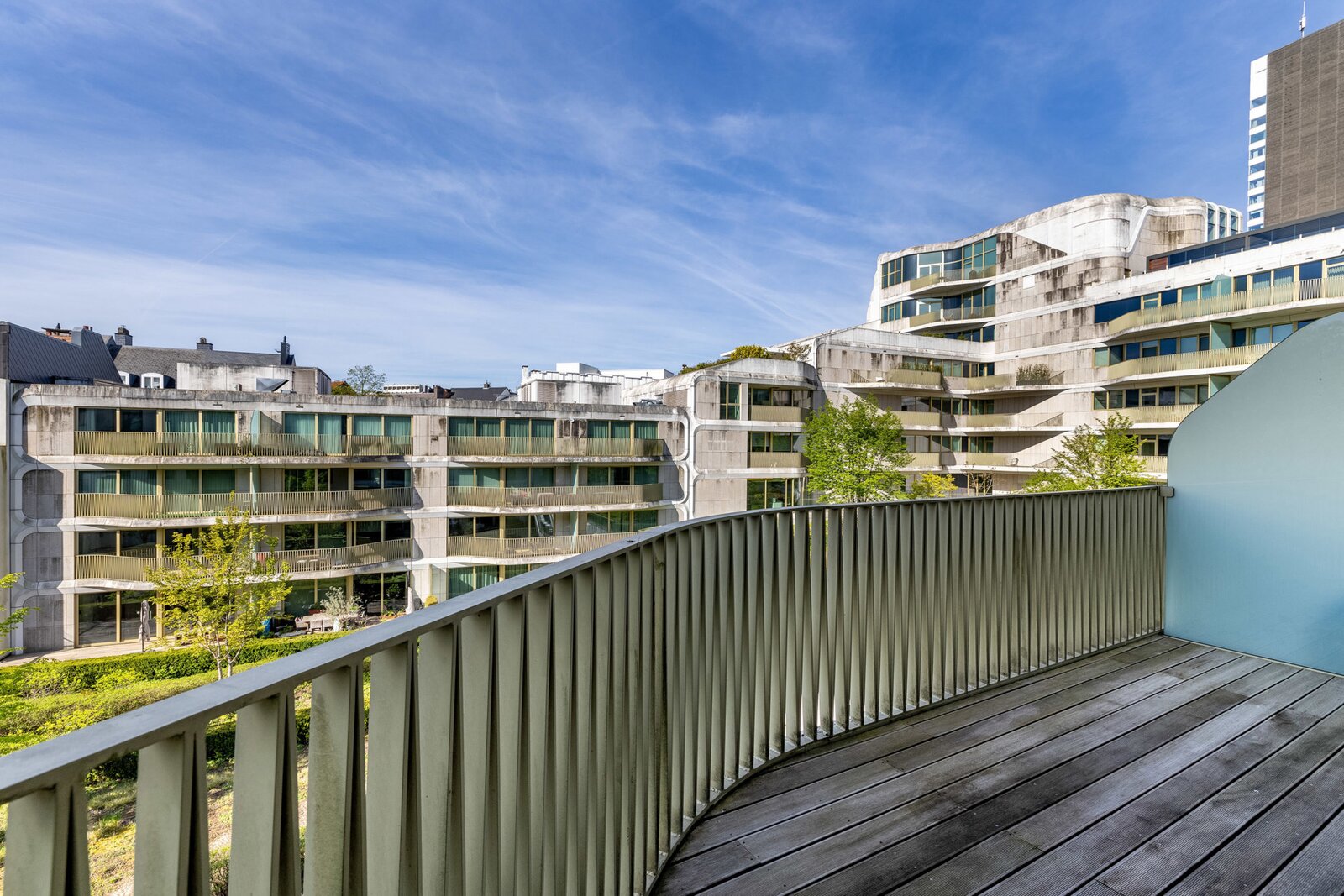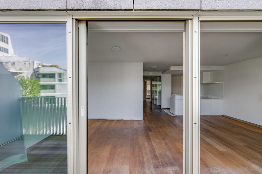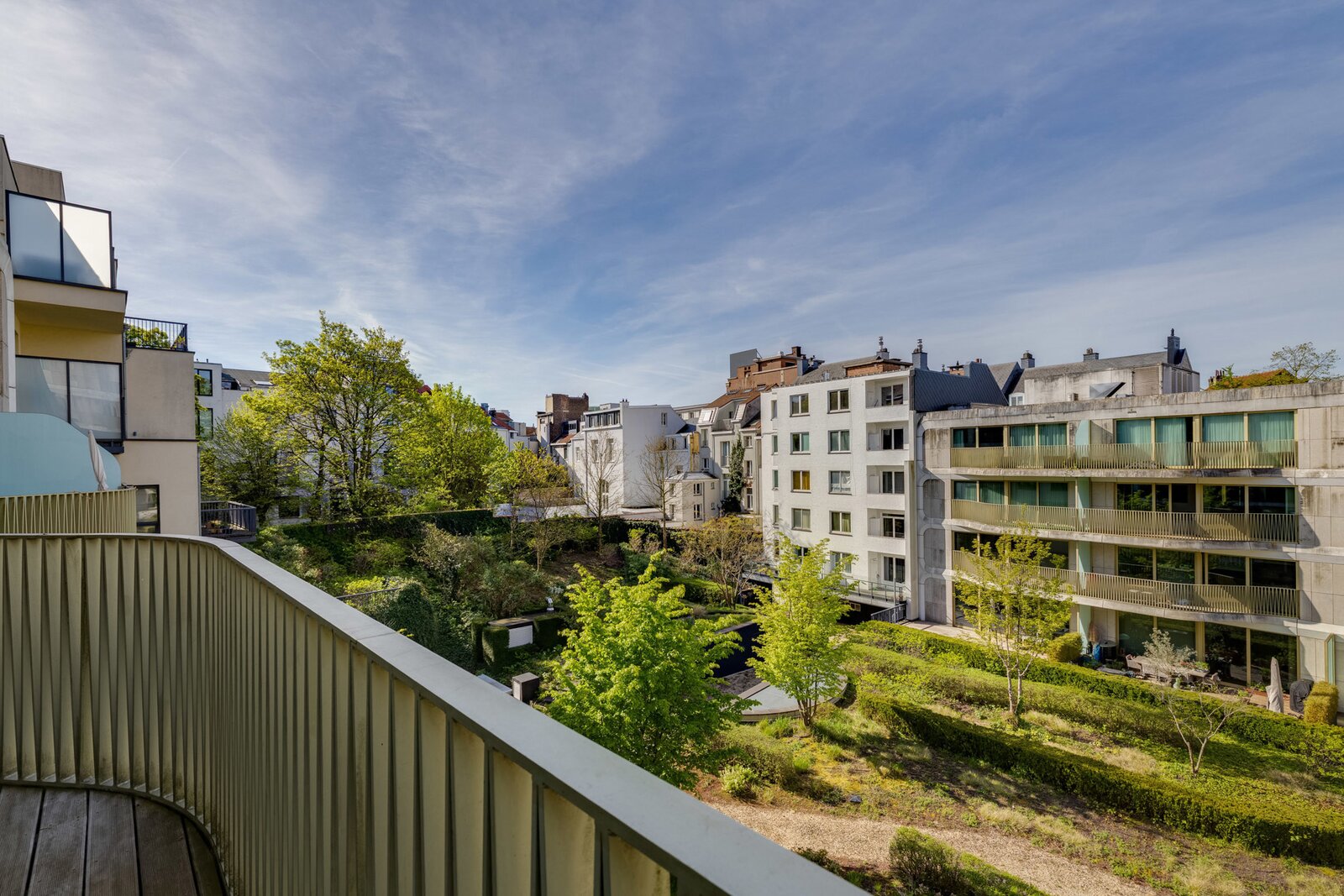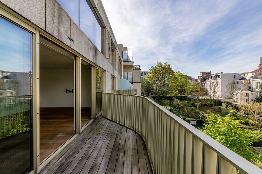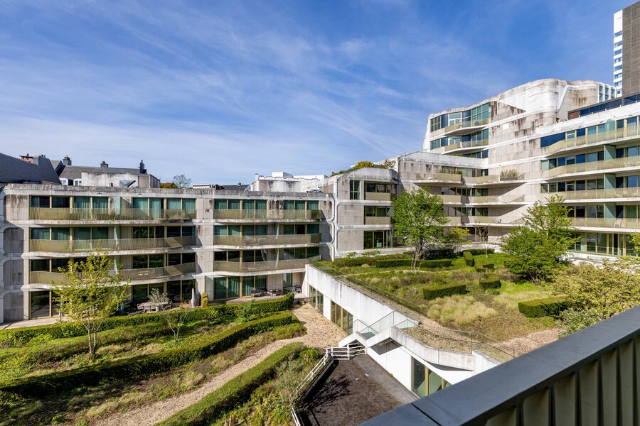 Het appartement, gelegen op de 3e en bovenste verdieping, heeft een entreehal met garderobe en gastentoilet, die toegang geeft tot een lichte woonkamer dankzij grote erkers die uitkomen op het terras en een onbelemmerd uitzicht bieden op de achtertuin. Een volledig uitgeruste open keuken met Gaggenau-apparatuur en een aparte wasruimte completeren de woonruimtes. De slaapvertrekken bestaan uit een hoofdslaapkamer met een aparte badkamer en inbouwkasten, en een tweede slaapkamer met een en-suite doucheruimte en inbouwkasten.