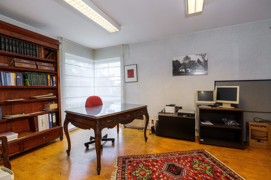 Op de begane grond bevindt zich een ruime inkomhal, een lichtrijke woonkamer met tv-hoek, een moderne leefkeuken, een berging, een gastentoilet en multifunctionele ruimtes die momenteel in gebruik zijn als kantoor. De eerste verdieping herbergt zes ruime slaapkamers, waaronder een master bedroom met een eigen dressing, twee badkamers, extra kantoorruimtes en een handige wasplaats. De woning beschikt tevens over een volledig onderkelderde ruimte die perfect dienst kan doen als hobby-, werk-, speel- of opslagruimte.