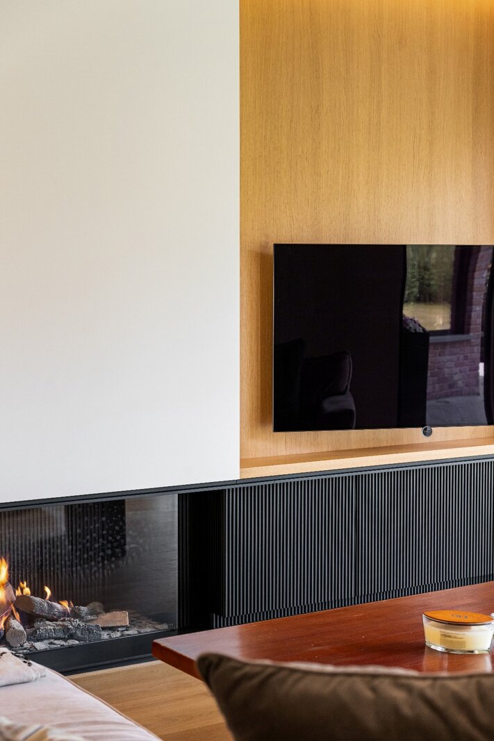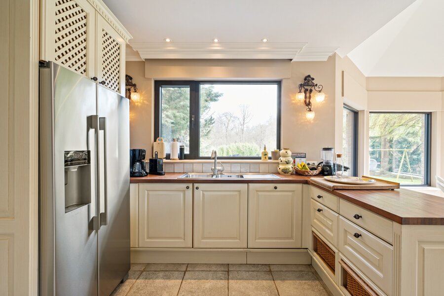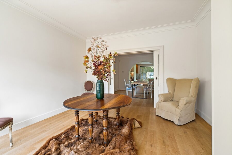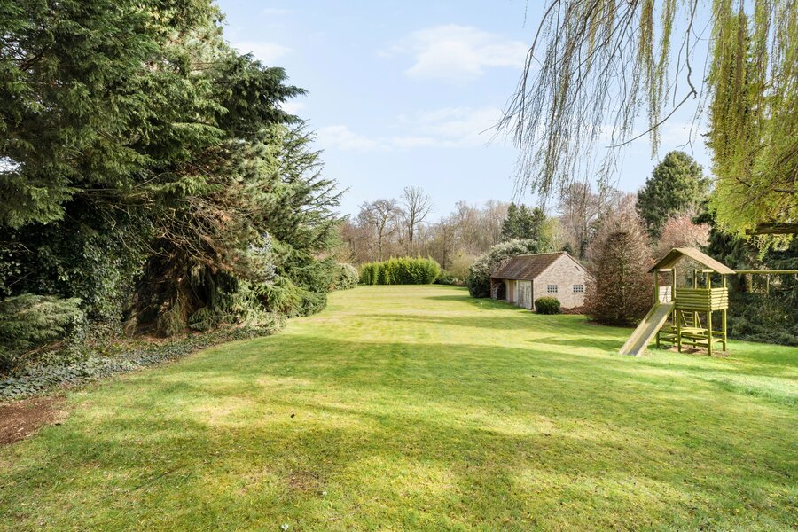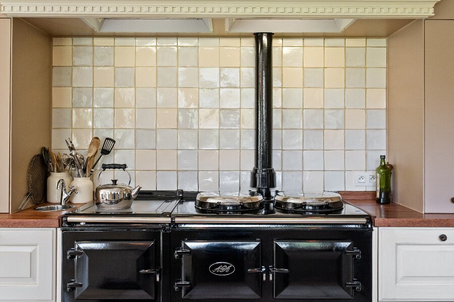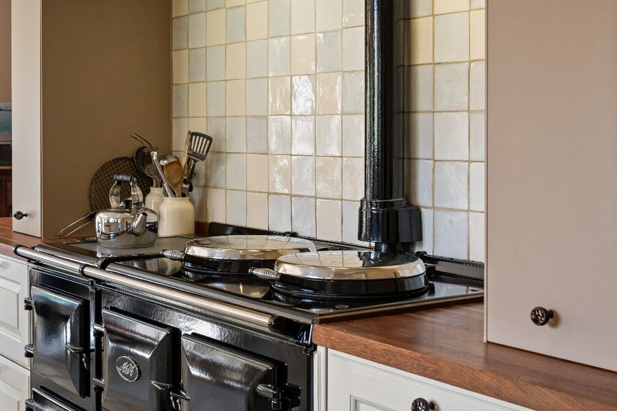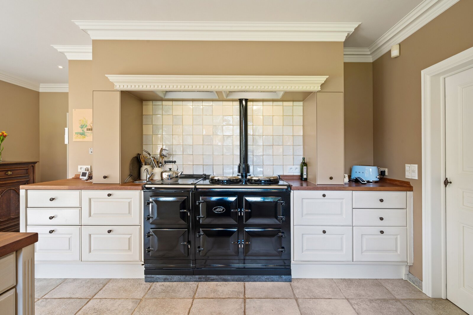 Binnen verwelkomt de woning u met meerdere grote leefruimtes, ontworpen met oog voor licht en elegantie. De woonkamer beschikt over een stijlvolle gashaard die voor een warme sfeer zorgt. De volledig uitgeruste keuken met luxueuze AGA-stoof biedt een prachtig zicht op de volwassen, perfect onderhouden tuin.