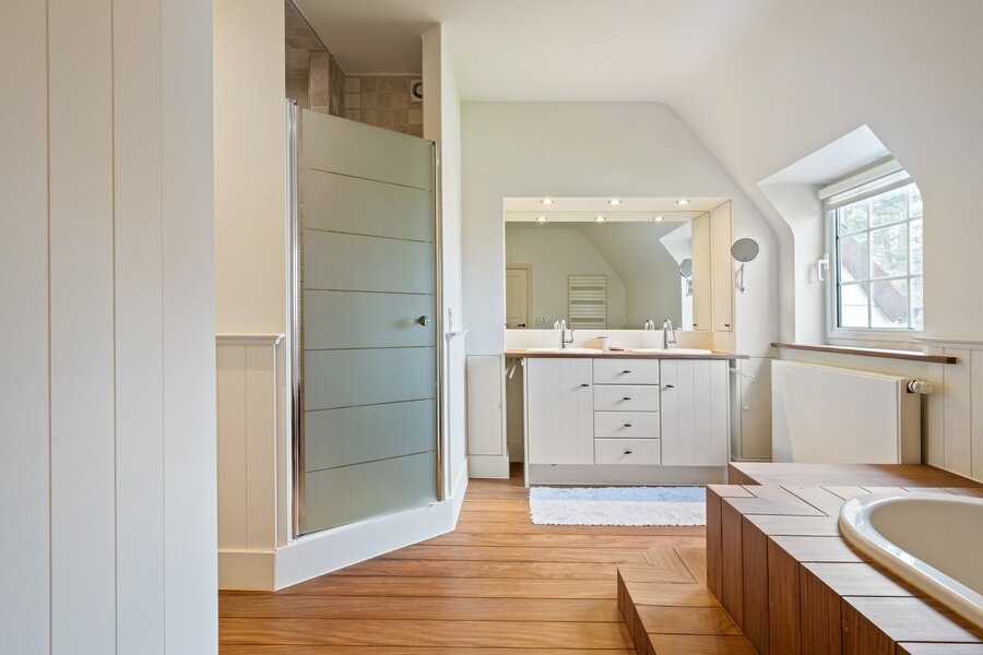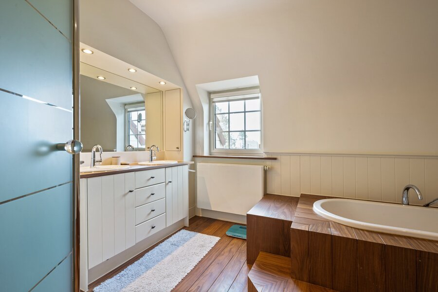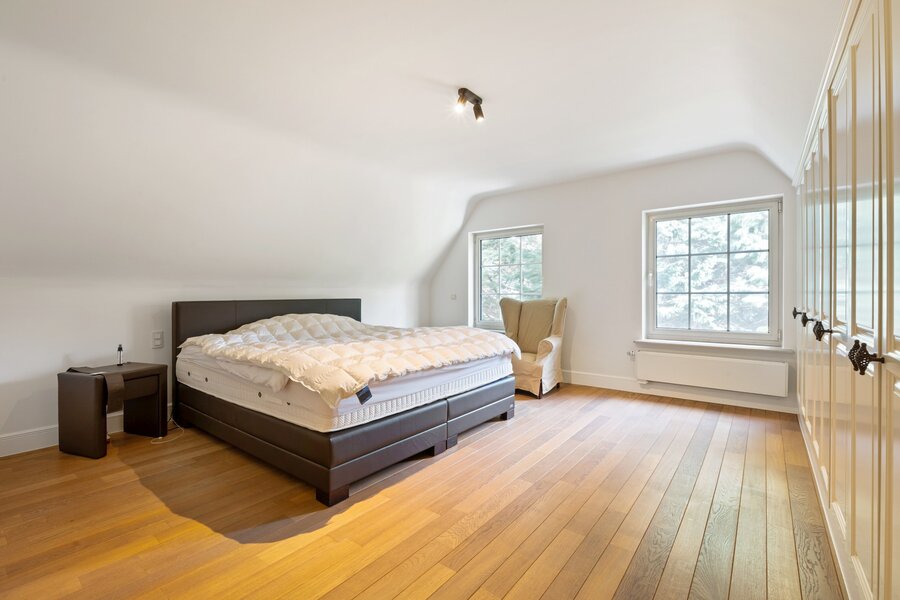 Daarnaast is er een afzonderlijke home office, ideaal voor thuiswerk. De villa telt vijf slaapkamers met een aangename lichtinval en een rustige uitstraling; één kamer geeft toegang tot een ruim dakterras, een privéplek om van zon en uitzicht te genieten.