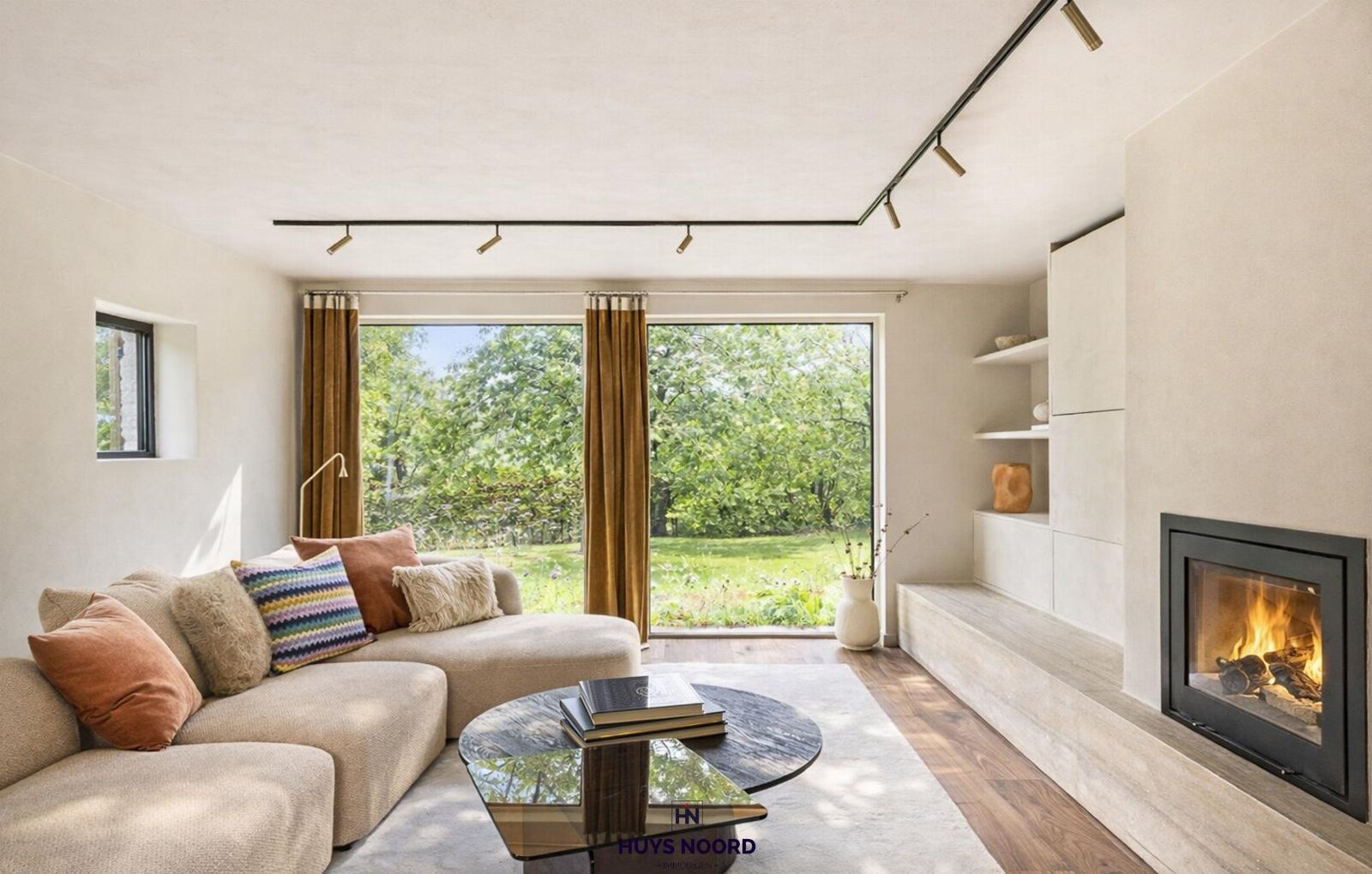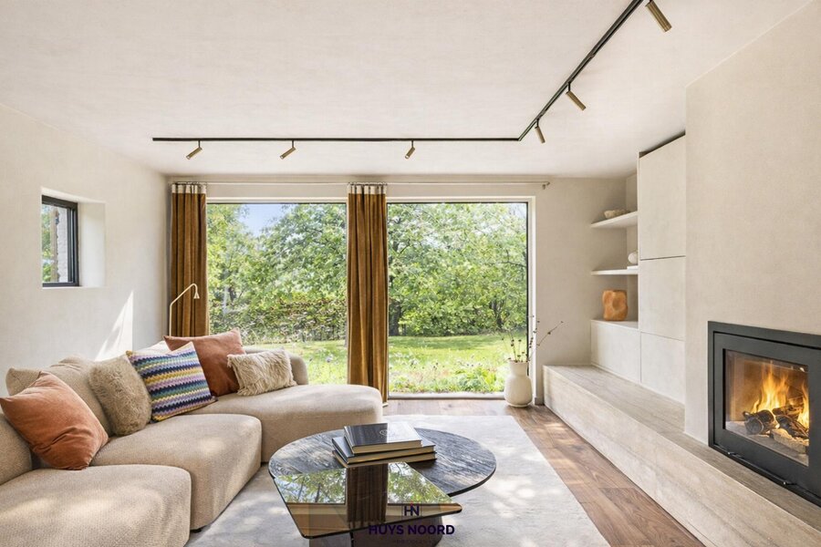 Deze leidt u naar een cosy zitkamer met open haard en zicht op uw prachtig landelijk aangelegde tuin.