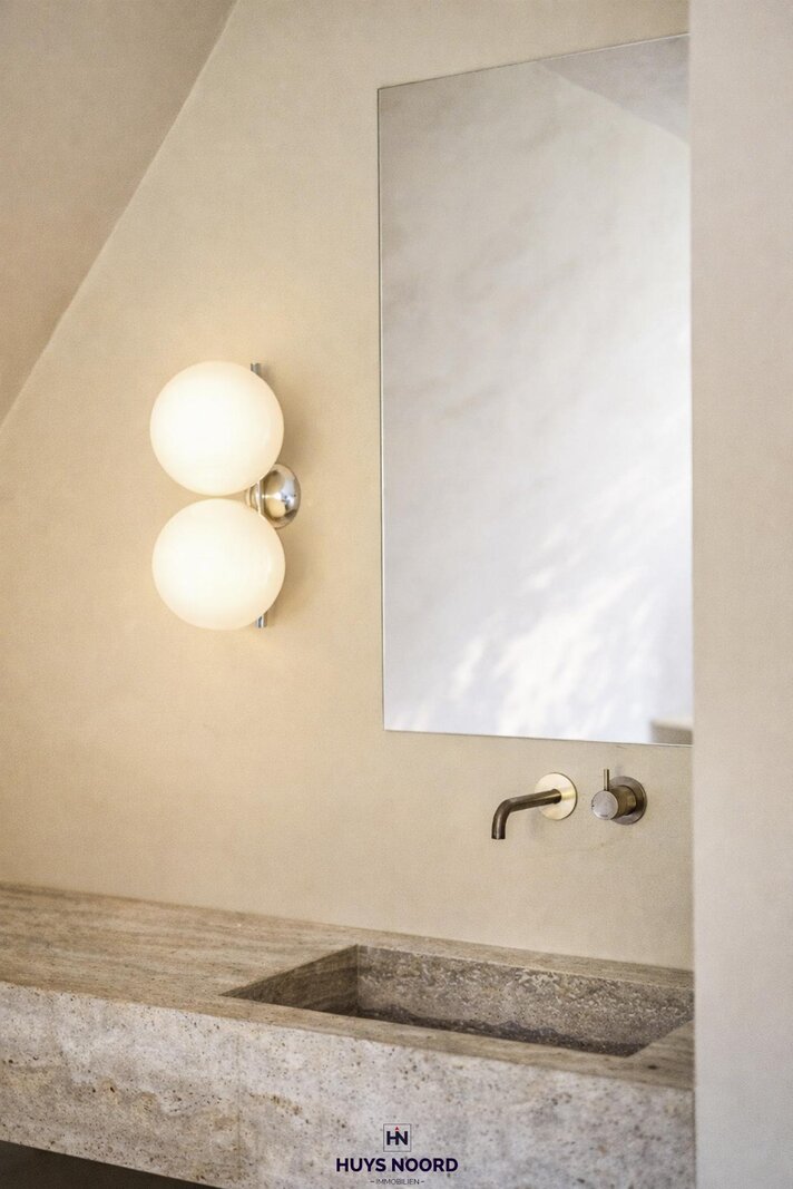 Op de eerste verdieping uw Masterslaapkamer met ensuite regen inloopdouche en marmeren wastafel.