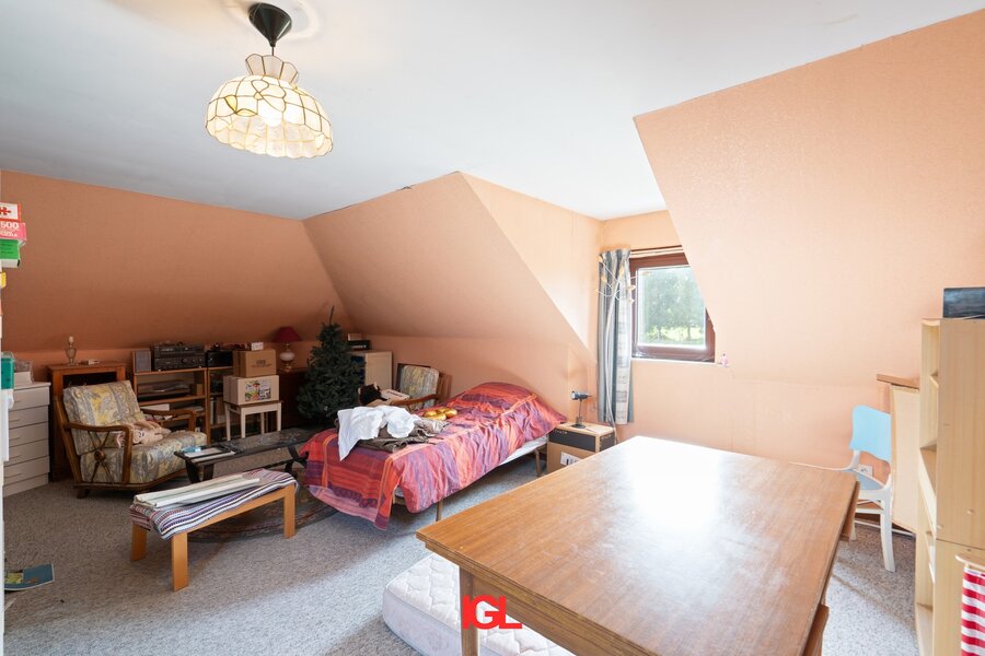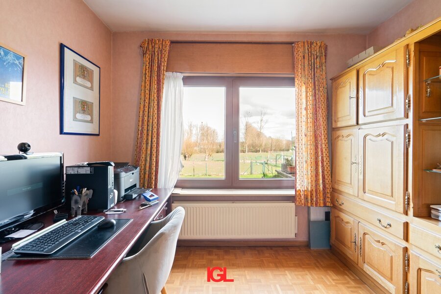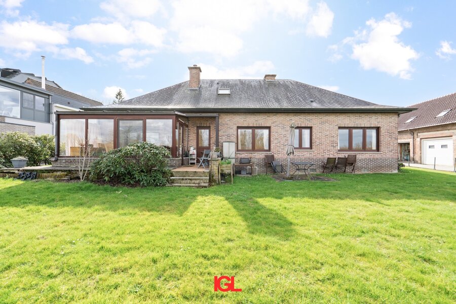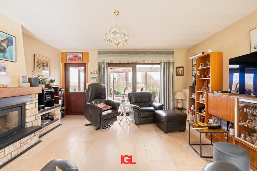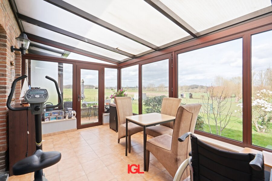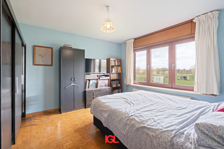 De woning bevindt zich op een uitzonderlijk perceel van 45a 65ca, met een prachtig open zicht over de achterliggende velden.