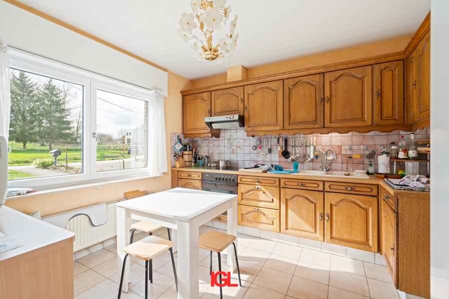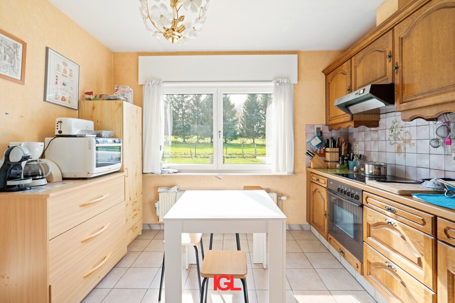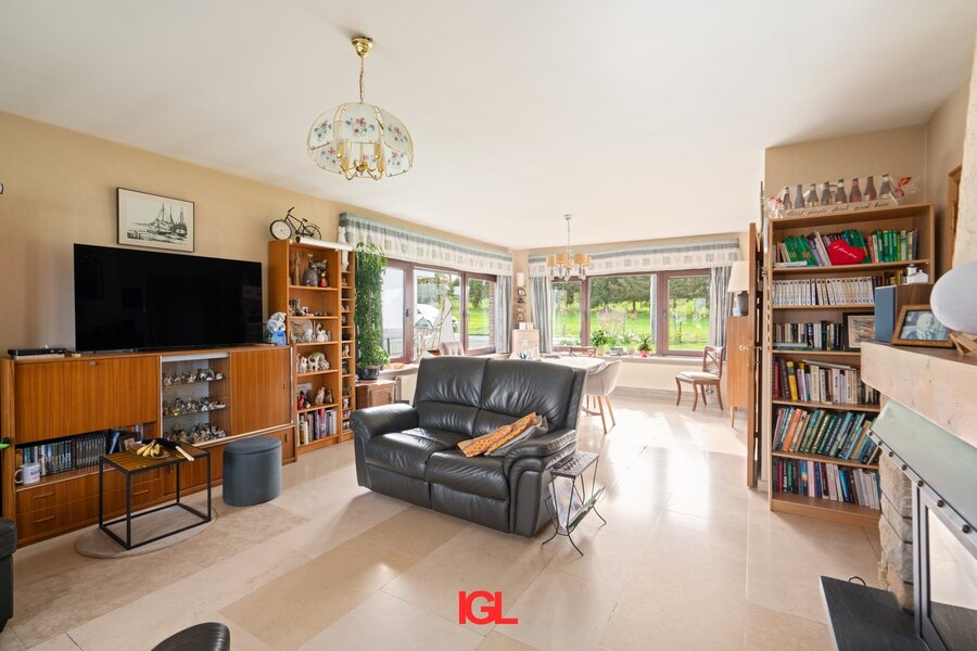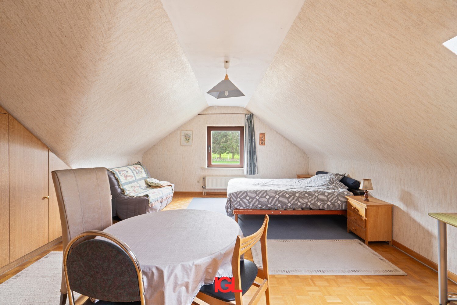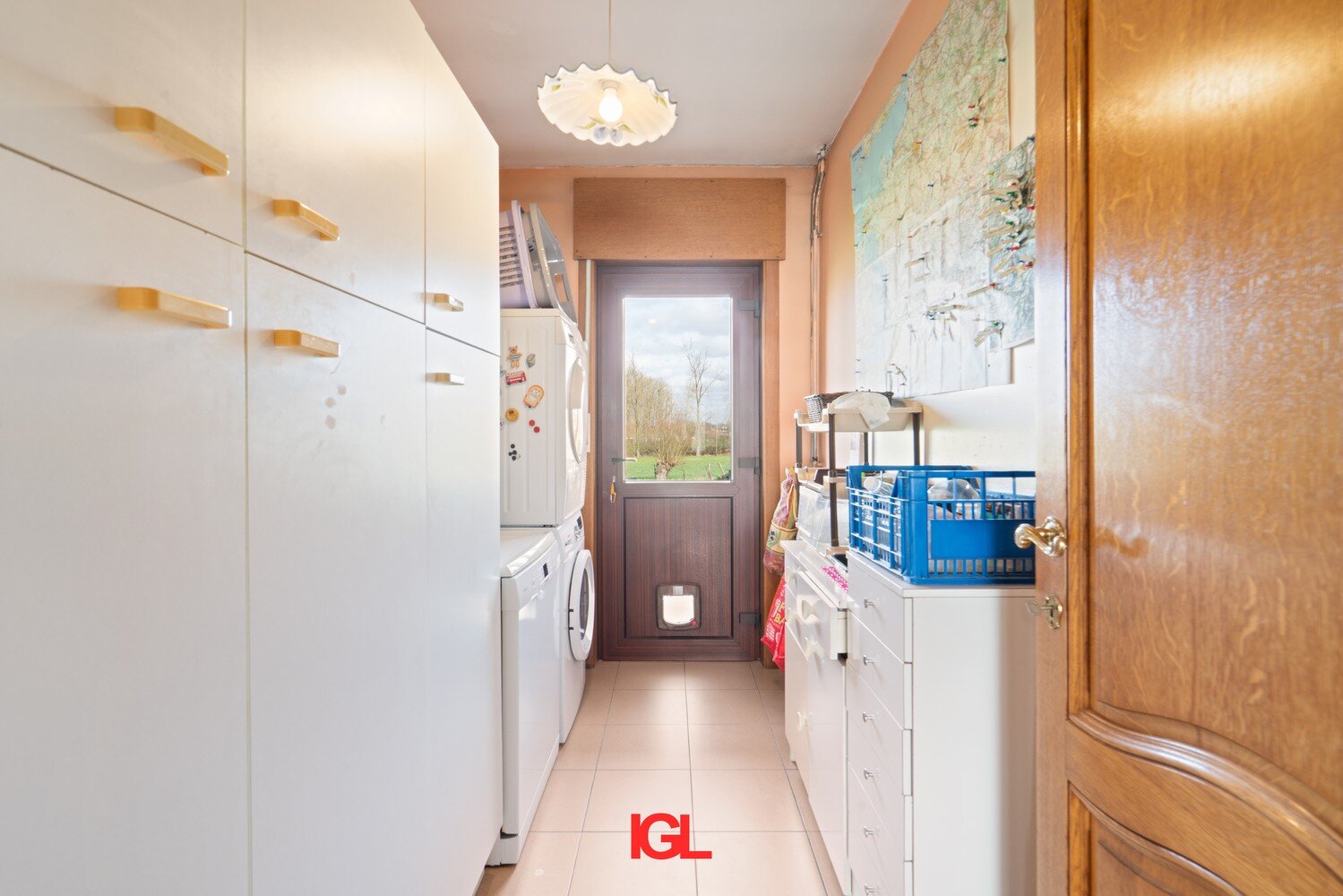 De woning bevindt zich op een uitzonderlijk perceel van 45a 65ca, met een prachtig open zicht over de achterliggende velden.