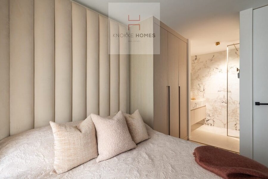 Er zijn twee slaapkamers, waarvan de master bedroom beschikt over een en-suite douchekamer. De tweede slaapkamer is momenteel ingericht met een royale dressing en een stapelbed (3 slaapplekken), maar kan makkelijk worden omgevormd tot volwaardige tweepersoonskamer en geniet eveneens van een eigen badkamer.