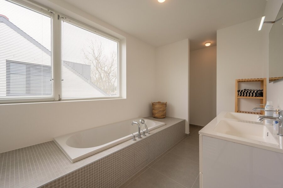 Eerste verdieping: royale masterbedroom met inloopdressing en badkamer voorzien van inloopdouche, ligbad, dubbele lavabo en toilet.