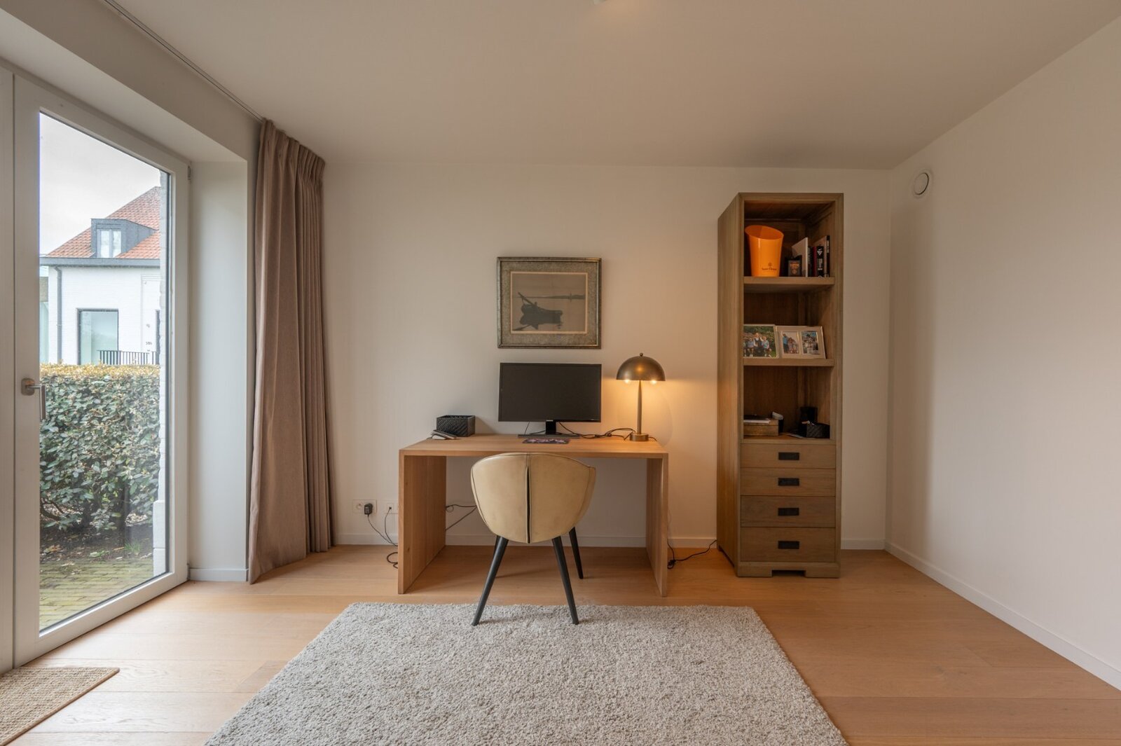 Praktische bijkeuken/wasplaats. Bureau - of speelkamer of gastenkamer met uitzicht op tuin en velden, eveneens met toegang tot een terras. Alles voorzien van hoge plafonds.