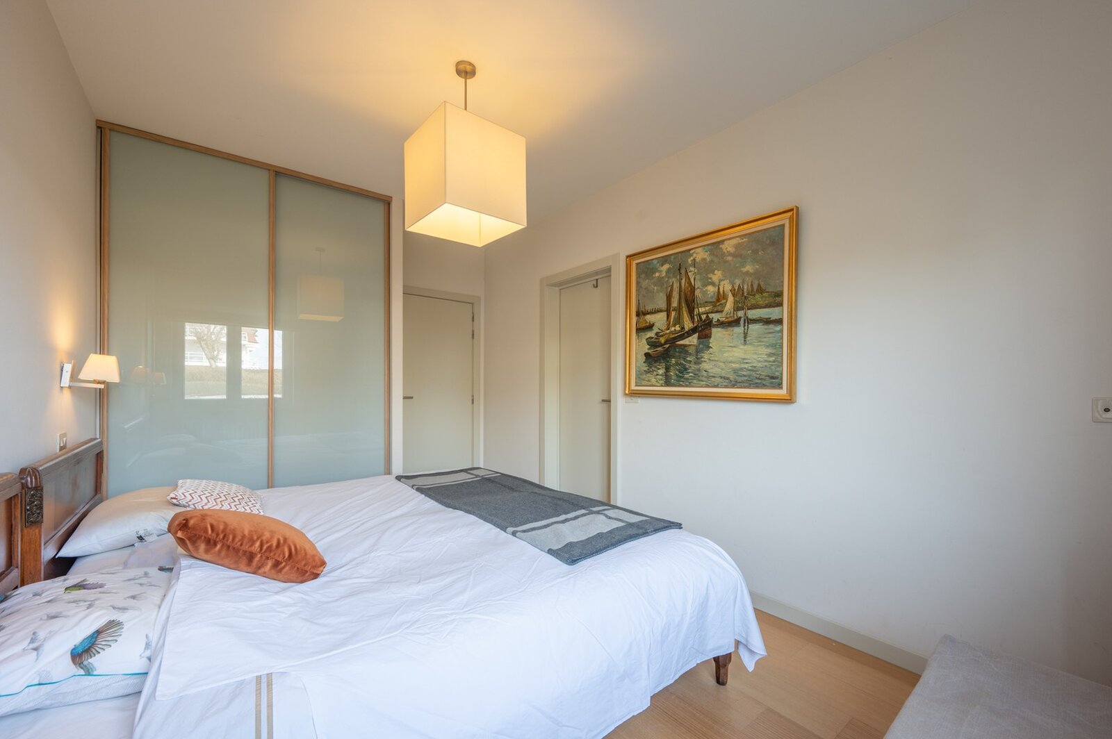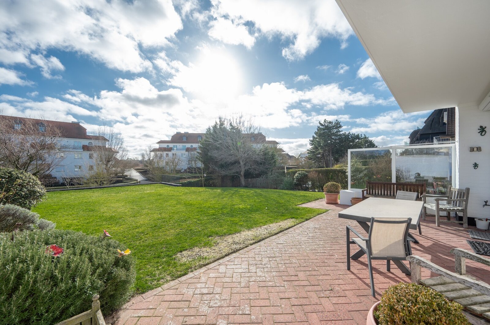 EXCLUSIEF TE KOOP: Zeldzaam hoek-tuinappartement, gelegen in een prestigieuze villaresidentie ter hoogte van de Wandeldijk, op slechts enkele stappen van het strand en de zee. Dit uitzonderlijke appartement beschikt over een privatieve tuin en ruim terras met een perfecte oriëntatie. Dankzij de hoekligging geniet u van een open, groen uitzicht en een sublieme lichtinval gedurende de hele dag. Indeling: Stijlvolle inkomhal met gastentoilet en vestiaire. De royale, lichtrijke leefruimte met gashaard sluit harmonieus aan op de open keuken, zithoek en eetplaats. Grote raampartijen bieden directe toegang tot het terras en de tuin, waar u in alle rust en privacy van de zon kunt genieten. De master bedroom beschikt over een en-suite badkamer met toilet en een dressing. Daarnaast zijn er twee volwaardige dubbele slaapkamers en een douchekamer. Het appartement is voorzien van elektrische rolluiken en beschikt over een ruime privatieve kelder en een fietsenberging. Er is tevens mogelijkheid tot aankoop van een dubbele staanplaats in de residentie. De gevel en de luiken van de residentie werden volledig herschilderd in 2025. Contacteer Knokke Real Estate voor een bezoek en ontdek dit unieke aanbod.