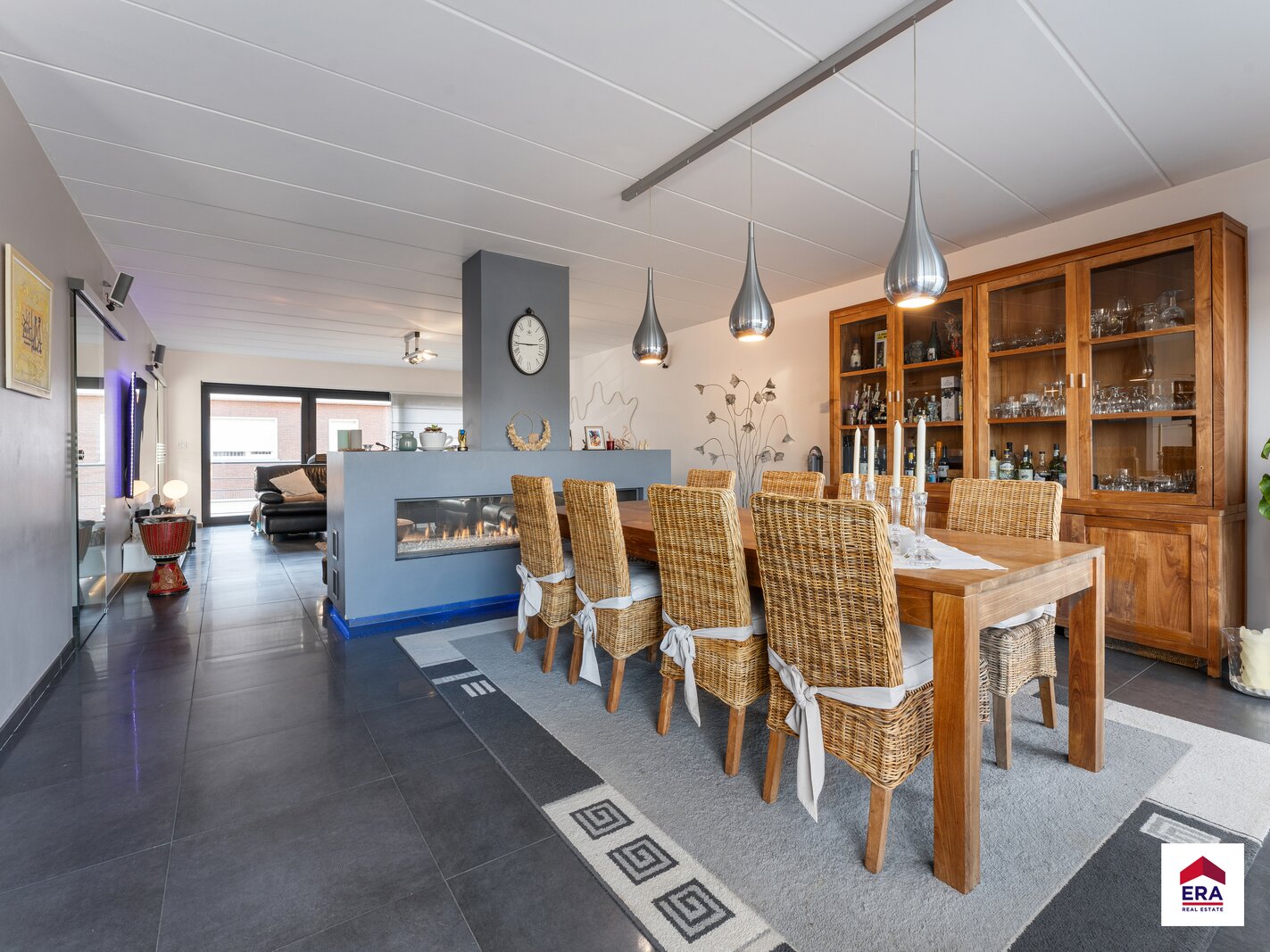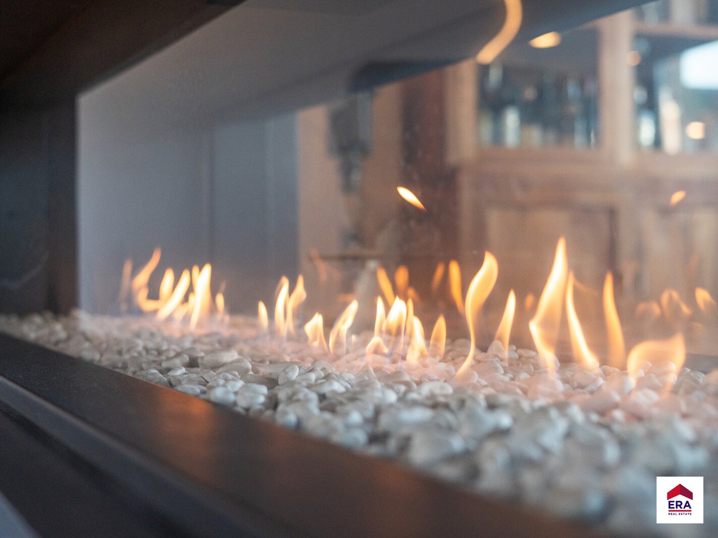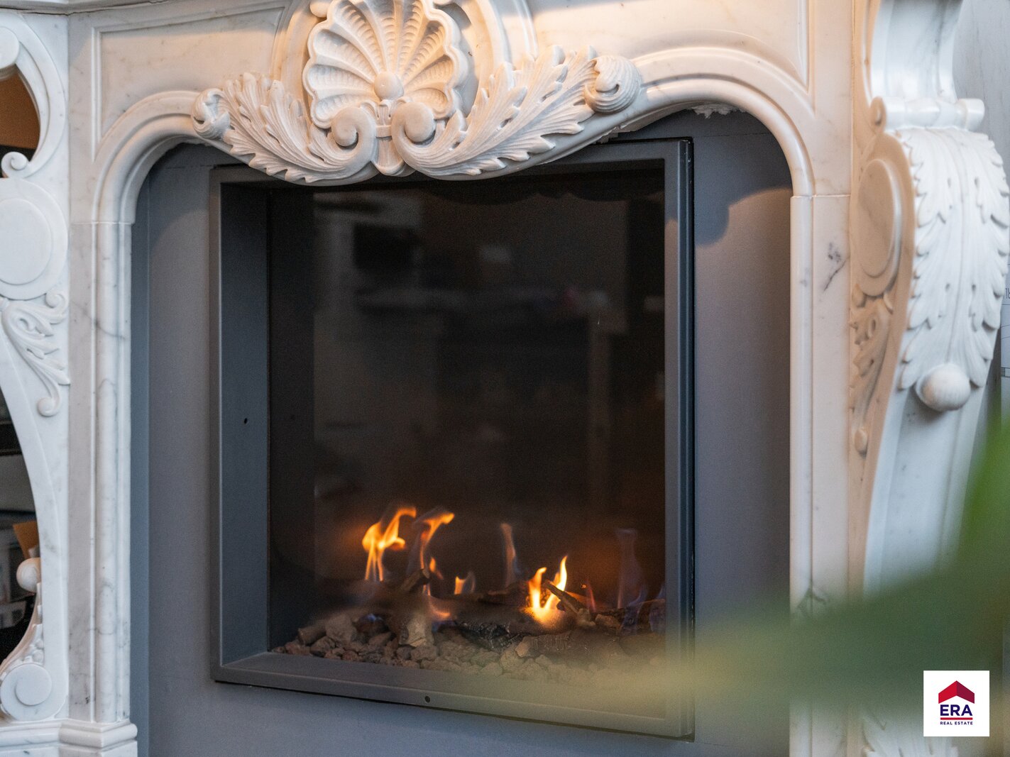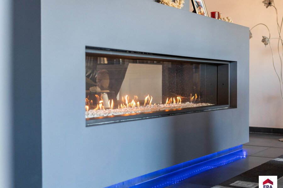 1e verdiep: woonkamer (63m²) met prachtige doorkijkhaard, open en volledig ingerichte keuken met bureel (14m²), koele berging, apart toilet, wasplaats, prachtig terras van 45m² met uniek uitzicht.