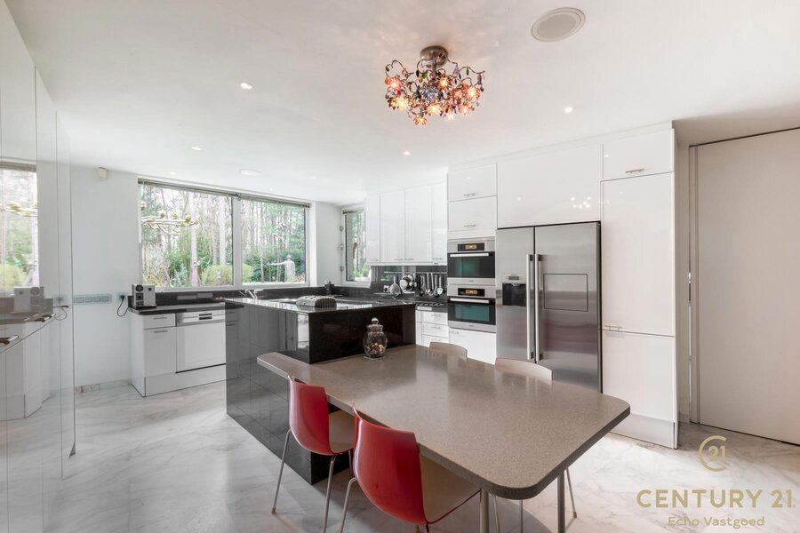 Ondanks de royale bewoonbare oppervlakte van 870m2, straalt het huis een gezellige sfeer uit. Interieur en functionaliteit staan centraal, daarenboven is de constructie zeer solide door gebruik van staal en beton. De woning werd gebouwd met gebruik van vooruitstrevende technieken betreffende o.a. isolatie en twee nieuwe verwarmingsketels met regelingen wat resulteert in een gunstige energiescore van 157 kWh. Bovendien bevinden zowel de woning als de prachtige tuin – gelegen op een grondstuk van ca. 11600m2 - zich in een uitmuntend goede staat van onderhoud.