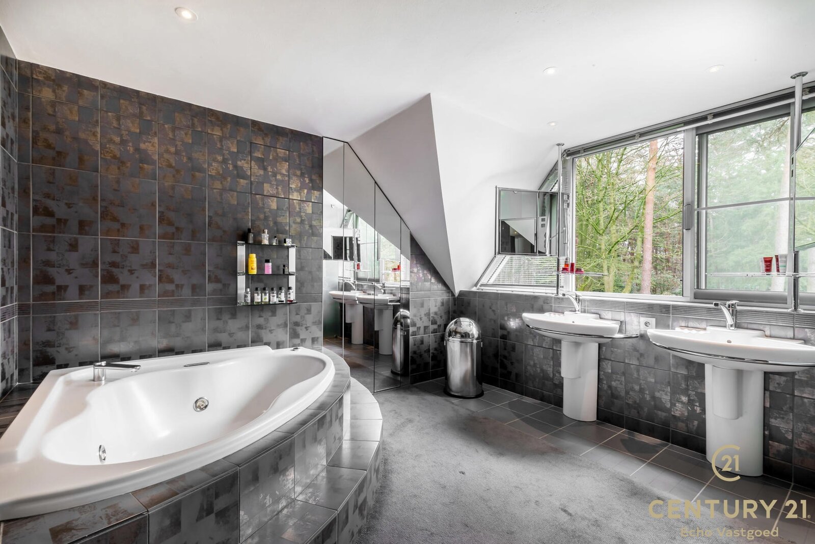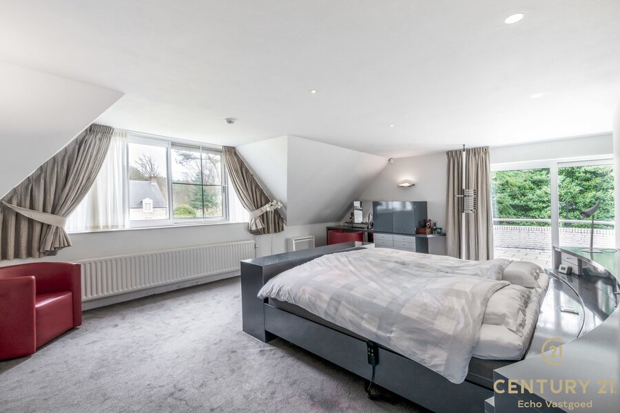 De royale nachthal geeft toegang tot de masterbedroom met dakterras, dressingkamer en moderne badkamer met whirlpool, dubbele wastafel en douche. Verder zijn er twee ruime slaapkamers met tussenin een badkamer en elks een eigen dressing. Verder vinden we hier een vierde slaapkamer met wastafel terug, twee ruime zolderkamers en een bergruimte.