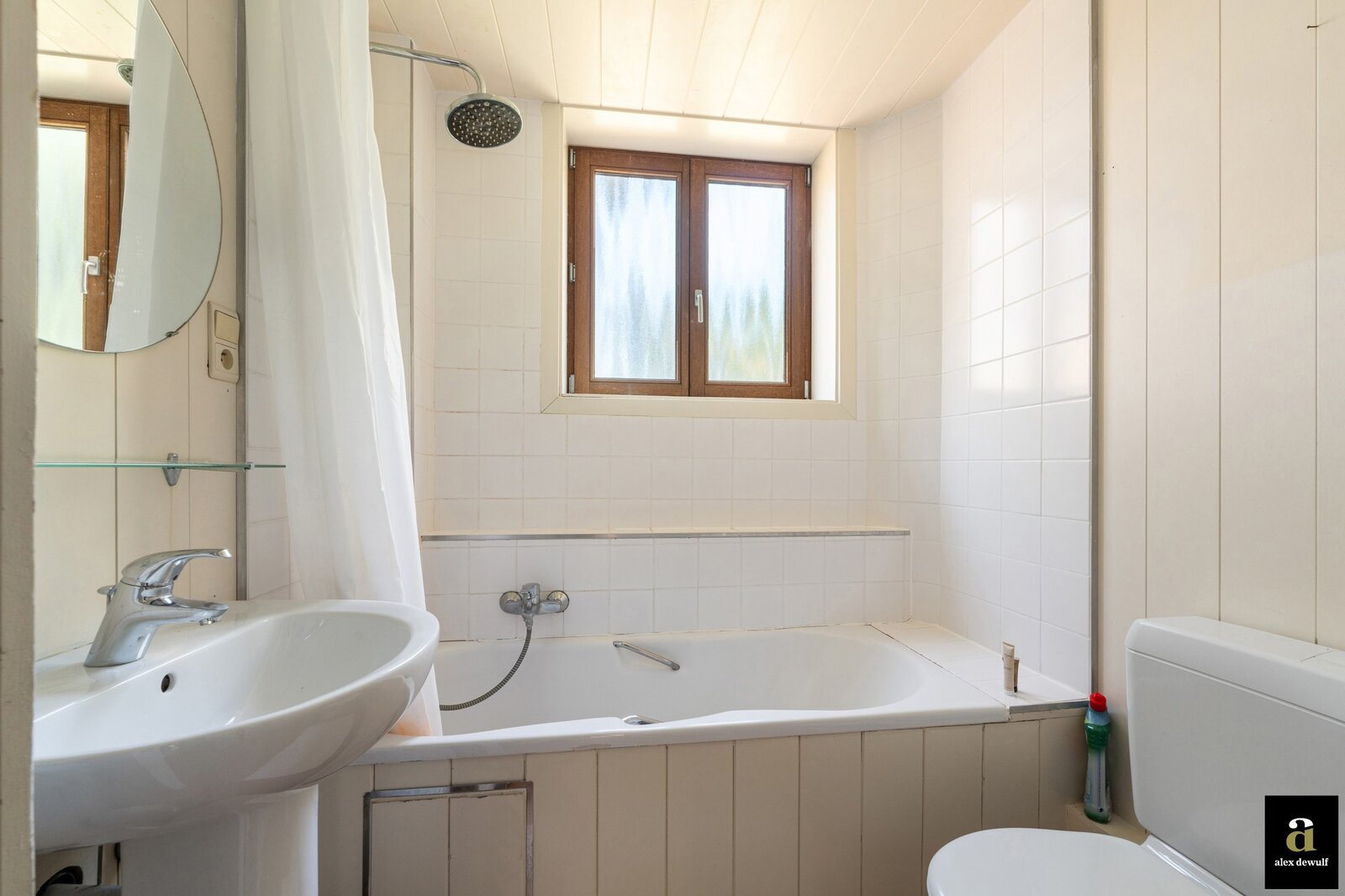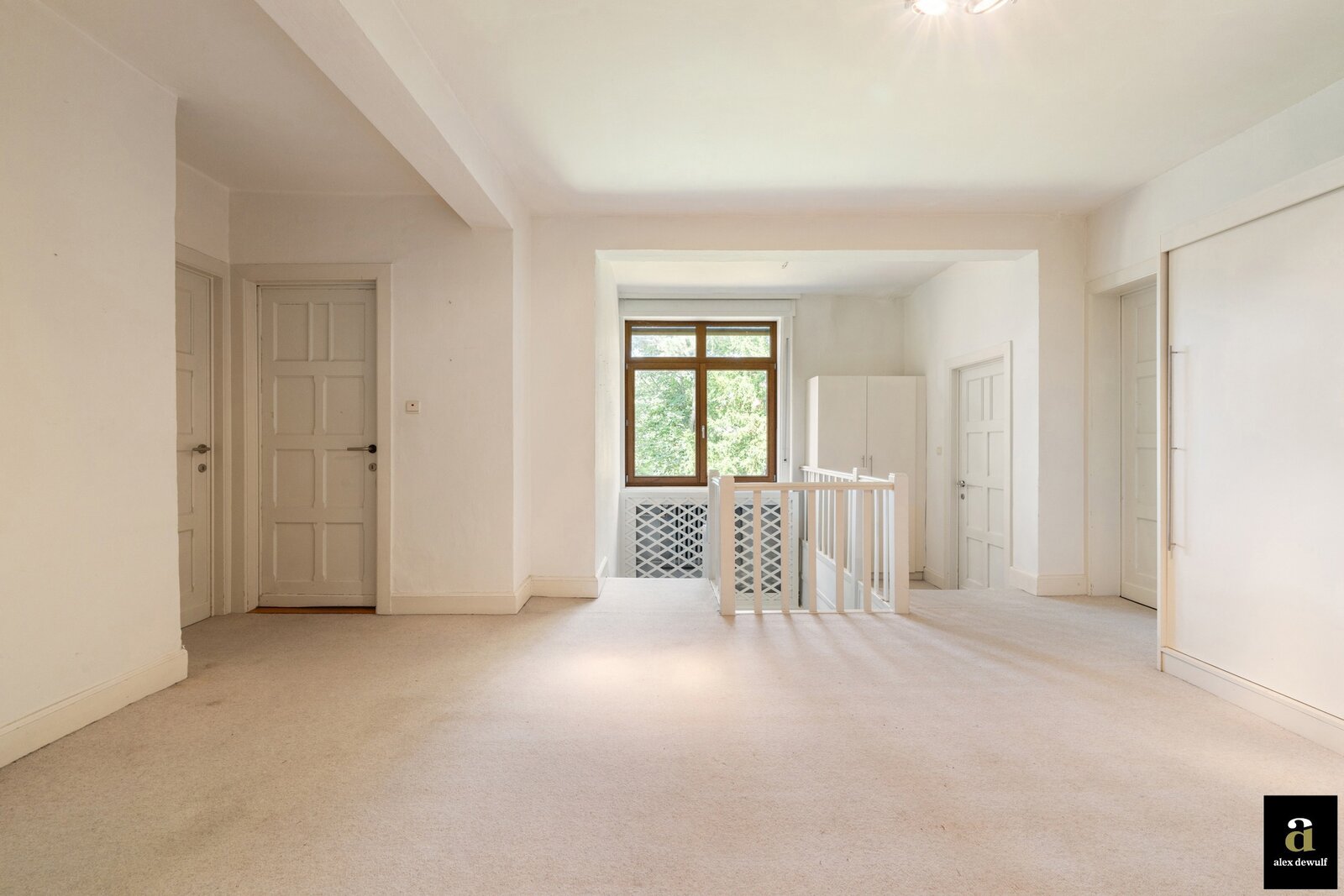 Deze karaktervolle woning biedt een solide basis met een klassieke indeling: op het gelijkvloers vinden we een inkomhal met trapzaal, een gastentoilet, een ruime woonkamer, keuken, garage en cv-berging. De verdieping herbergt maar liefst zeven slaapkamers, twee badkamers en meerdere praktische bergingen, ideaal voor een groot gezin of wie ruimte op prijs stelt.