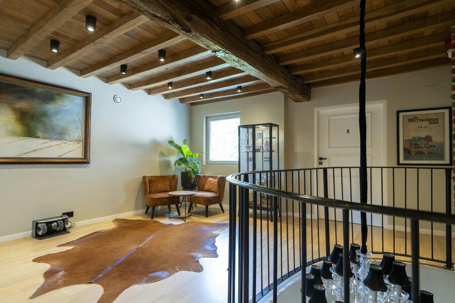Daarnaast beschikt dit uniek pand over een woongedeelte dat ingericht is in de iconische toren van de hoeve.