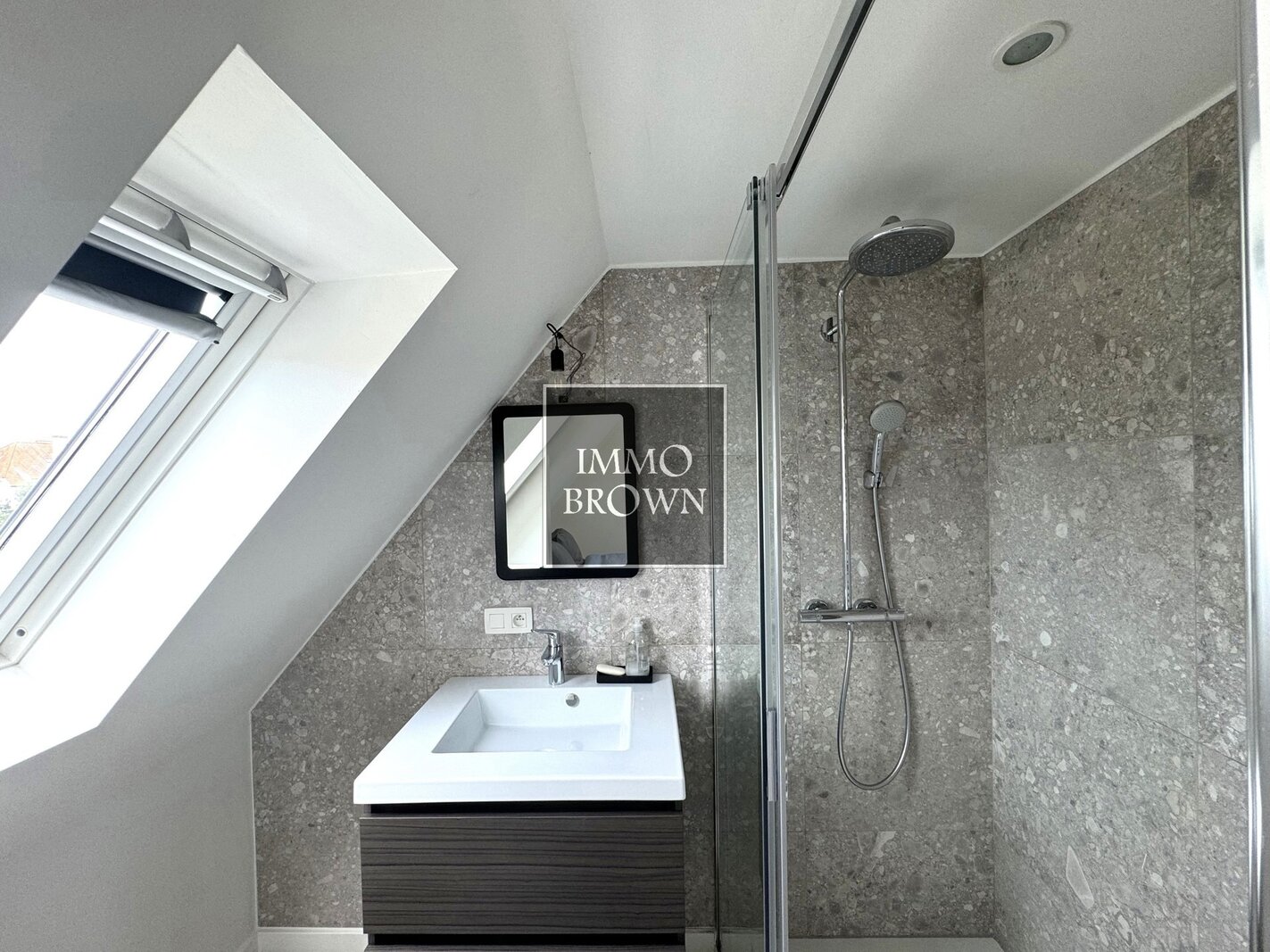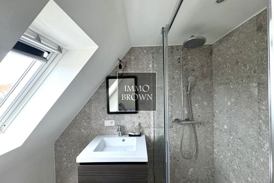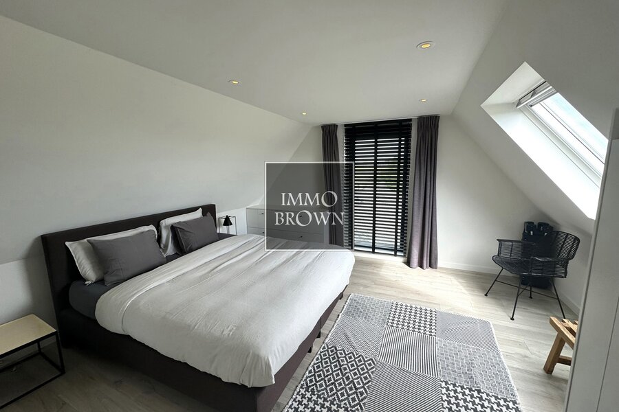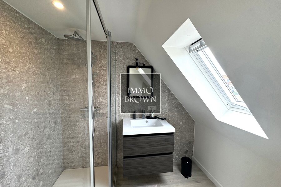 Aparte atelier met living, keuken, eetkamer en leefruimte. Op het verdiep zijn er twee volwaardige slaapkamers met elk hun eigen badkamer en toilet.