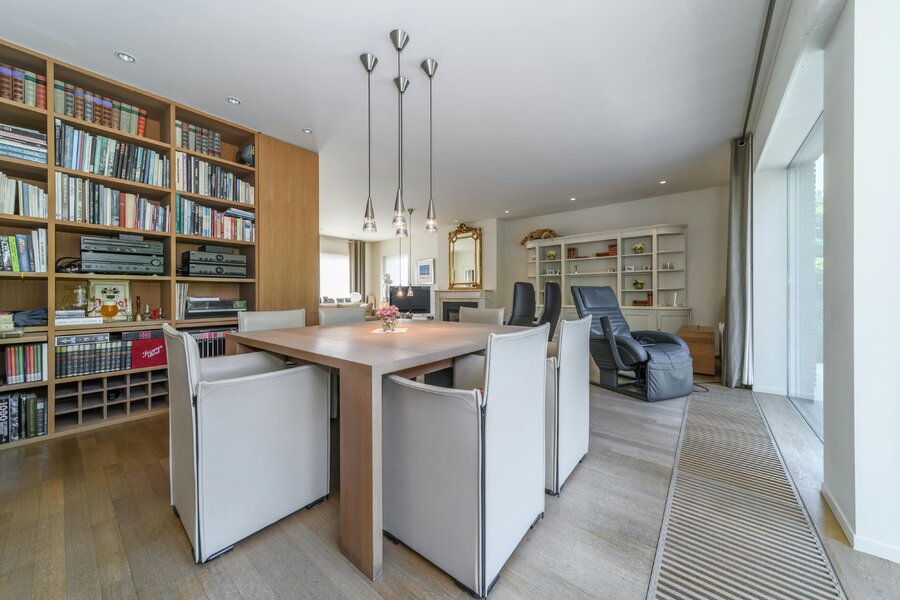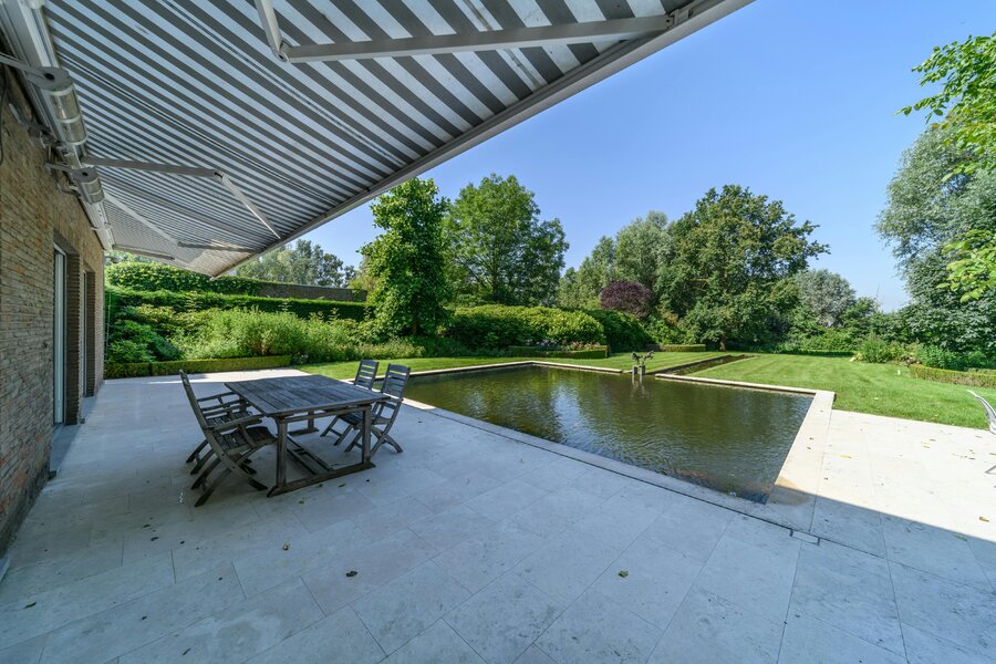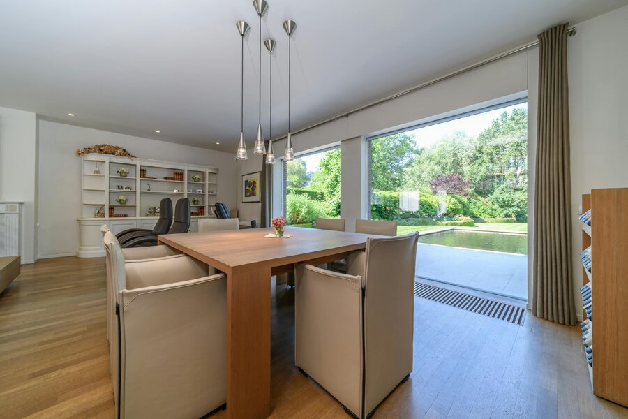 - Leefruimte met eetplaats en uitzicht op de tuin, terras en zwemvijver